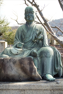 鳥辺山、大谷道の途中に本寿寺(ほんじゅ-じ)がある。 日蓮宗。 ◆歴史年表 創建の詳細、変遷は不明。 室町時代、1456年、本法寺(上京区)の墓守り寺として建立されたという。開基は日親によるという。(『京都名家墳墓録』) 安土・桃山時代、1595年、日親の廟所が建てられた。 ◆日親 室町時代前期の日蓮宗の僧・日親(にっしん、1407-1488)。男性。上総国(千葉県)の生まれ。父は千葉一族・埴谷重継(その養子とも)。兄とともに妙宣寺の日英に師事。中山法華経寺の5世・日暹(にっせん)、6世・日薩に師事。1427年、上洛、一条戻橋で不惜身命、折伏逆化の説教を行う。筑前、鎌倉、1433年、中山門流の総導師として九州・肥前で布教する。1436年、鎌倉の日蓮系寺院が幕府により弾圧された「永享の法難」に遭う。1437年、激しい折伏により門流を破門された。上洛し本法寺を建立する。1439年、将軍足利義教に法華信仰の受持と他宗の排斥を勧めたが伝道も禁止される。1440年、『立正治国論』の清書中に投獄され拷問を受け、本法寺は破却される。1441年、義教が赤松満祐に殺害されたため赦免、本法寺を再建した。1460年、九州遊行の際に本法寺は再度破却され、1463年、投獄された。1464年、赦免、本法寺を再再建する。1487年、本法寺法式を定める。『本法寺縁起』を起草する。82歳。 獄中で激しい拷問を受け、熱湯の入った鍋を頭に被せられ、舌も切られたという。そのため、後世、江戸時代に「鍋かむり(冠鐺[かんとう])日親」と呼ばれた。 鍋は生涯、頭から取れなかったという伝承もある。 ◆鳥辺山心中 「鳥辺山心中」で知られた「お染半九郎の墓」といわれるものがある。二条城普請奉行付組下・菊池半九郎(22歳)と祇園水茶屋「若松」に出ていたお茶汲み女・お染(19歳)の「比翼塚」とされる。詳細は不明。 江戸時代前期、1626年旧9月29日に、お染と半九郎は恋仲になる。半九郎が江戸に戻ることになり、悲観した二人は鳥辺山の井戸に抱き合い身を投げたという。また、半九郎はお染に一目ぼれし、店に通ううちに公金にまで手を付け心中したともいう。徳川幕政下初の心中事件になった。 事件は当時の芝居や近松門左衛門の上方唄「鳥辺山」に歌われる。近代、1916年に、小説家・劇作家の岡本綺堂(1872-1939)は、事件を題材に脚色し、新歌舞伎「鳥辺山心中」を本郷座で上演した。 墓地内に「比翼塚」がある。塚は東面して建てられている。井戸桁の上に厨子が置かれ、屋形が載せられている。格子内に小さな石塔が立てられ、「宗秋信士」「妙秋信女」と刻まれている。 半九郎とお染にあやかり、塚の近くには江戸時代の歌舞伎役者、4世・中村歌右衛門(1798–1852)、4世・実川延三郎(1856-1888)などの墓もある。 なお、比翼塚は聖護院の森の心中事件の「お俊・伝兵衛の墓」と取り違えられたともいう。その後、「お染半九郎の墓」に改めたとも、お俊・伝兵衛の墓ままともいう。お俊・伝兵衛の墓とされるものは、積善院凖提堂(左京区)、実報寺(東山区)にもある。 ◆梅 境内の南西にかつて梅の大木があった。早咲きで知られ、幹は3つに別れていた。白い塀越しに満開の梅は国道1号線からも見えていたという。現代、2008年頃、樹勢衰え伐採された。その後、切り株から数本の新しい枝が伸び、いまでは白い花弁を付けている。 ◆墓 ◈開基・日親の逆修塔を納めた廟所に笠塔婆がある。その前に、日親を火葬した荼毘所跡がある。生前に立てられた。 室町時代後期、1488年に日親が没した後に、この地に埋葬された。当時は兵乱が続いたため、廟塔は土中に埋められ、上に草木が植えられ秘匿された。安土・桃山時代、1595年に掘り戻され、廟塔が整備された。 *年号は原則として西暦を、近代以前の月日は旧暦を使用しています。 *参考文献・資料 『祇園と舞妓』、『京都市の地名』、『事典 日本の名僧』、『京都府の歴史散歩 中』、『昭和京都名所図会 1 洛東 上』 、『京都戦国武将の寺をゆく』、ウェブサイト「コトバンク」 ![]() ![]() ![]() ![]() ![]() ![]() ![]() ![]() ![]() |