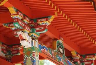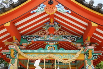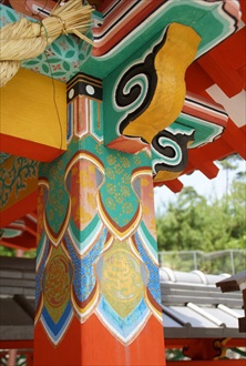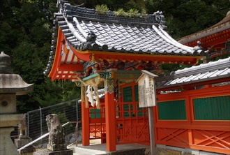 城陽市の久世神社(くぜ-じんじゃ)は旧久世村の産土神として祀られていた。かつて若王社(にゃくおうしゃ)、白鳥の宮(しらとりのみや)とも呼ばれた。 祭神は本社に日本武尊(やまとたけるのみこと)、末社・稲荷神社に倉稲魂神(うかのみたまのかみ)、龍王神社に級長津彦命(しいなつひこのみこと)、級長津姫命(しいなつひめのみこと)を祀る。 延喜式内社には比定されていない。 ◆歴史年表 創建、変遷の詳細は不明。 室町時代末期、現在の本殿が建立された。かつて若王社と称した。 近代、1868年、久世神社に改める。 1874年、郷社に列せられた。 ◆伝承 創建伝承として、祭神の日本武尊(やまとたけるのみこと)は、その死後、一羽の白鳥として飛翔した。この地、鷺坂(さぎざか)に飛来してとどまった。以来、この地に祀られたのが当社の始まりという。(『大和本紀』) 日本武尊妃の山代之玖玖麻毛理比売(やましろくくまもりひめ)は、足鏡別王(あしかがみわけのみこ)を産む。妃はこの地の古代豪族、栗隈県主(くりくまあかだぬし)の出自とされる。その伝承に因み、後世、栗隈氏が当社を勧請したともいう。栗隈氏は大和政権(大和朝廷)に服属し、この地、栗隈郷の開発、管理を行った。水路の栗隈大溝(おおみぞ)を開削したという。その後、少なくとも平安時代前期にはすでに勢力を失った。 『万葉集』巻7-1286にある飛鳥時代の柿本人麻呂(660?-720?)は、「山背の久世の社の 草な手折りそ わが時と 立ち栄ゆとも 草な手折りそ(山背の久世の社の草を手折ってはならない、我が世の盛りとばかり立ち栄えていようとも、社の草を手折ってはならない)」と詠んだ。この「久世の社」に当たるともいわれる。ただ、「社(やしろ)」は「久世の杜(もり)」の誤りともされ、式内社には比定されていない。 なお、境内東に面した坂はこの伝承より、「久世の鷺坂」と呼ばれている。この坂に、「山城の久世の鷺坂 神代より 春ははりつつ 秋は散りけり」(「柿本朝臣人麻呂之歌集」)の万葉句碑が立てられている。ただ、坂の位置については諸説ある。境内東の句碑の付近とも、境内西の旧大和街道(久世-寺田)付近、東部の丘陵地にある富野(との)の鷺坂山ともいう。 なお、蟹満寺に伝えられる「蟹の恩返し」について、久世神社にあった蟹池の伝承がもとになっているともいう。(『日本霊異記の世界』) ◆建築 現在の本殿(重文)は室町時代中期に建てられた。南面しており、丹塗りの一間社流造、檜皮葺。柱上部、組物、庇水引虹梁、庇蟇股などを極彩色とし、内陣正面に弊軸付板扉、外陣正面に引違の格子戸を4枚立てる。 内陣正面板扉に扉2枚の松、左右脇羽目板に草花を描く。内陣正面欄間中央に巴紋文、左右に六弁の花紋を飾る。外陣正面に透し彫り欄間、唐草文様が一間あり、中央に菊、左右に桐を配している。 ◆久世廃寺 久世神社境内一帯は、奈良時代前半に創建されたとみられる古代寺院、久世廃寺跡の東側に当たり、境内に土檀が見られる。久世廃寺跡は国指定史跡になっている。 ◆年間行事 新年祭(1月1日)、祈年祭(春祭り)(4月上旬日曜日)、夏祭(8月中旬日曜日)、例大祭・神幸祭(10月6日-7日、大篝火神事は、日本武尊が大和政権(大和朝廷)に敵対した者を討伐したという伝承に因む。御旅所<久世南垣内>で大篝火を献じる)(10月5日-7日)、新嘗祭・新穀感謝祭・お火焚き(12月第3日曜日)。 *年間行事は中止・日時・内容変更の場合があります。 *年号は原則として西暦を、近代以前の月日は旧暦を使用しています。 *参考文献・資料 『城陽町史』、「城陽市教育委員会」説明板、『京都の地名 検証』、『京都の地名 検証2』 ![]() ![]() ![]() ![]() ![]() |