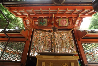 木津川の北、城陽市富野荒見田(とのあらみた)に荒見神社(あらみ-じんじゃ)は建つ。境内の四方を掘割に囲まれ南面して鳥居と薬医門がある。旧富野村の産土神とし崇敬されてきた。 祭神は天火明(あめのほあかり のみこと)、天香語山尊(あめのかごやまのみこと)、天村雲尊(あめのむらくものみこと)、阿比良依姫尊(あひらよりひめのみこと)、木花開耶姫尊(このはなさくやひめじんじゃ)を祀る。 式内社とされる。平安時代、『延喜式神名式(延喜式神名帳)』(927)中「久世郡 二十四座 大十一座 小十三座」の「荒見神社」に比定されている。ただ、近代になり、久御山町の同社号の荒見神社が式内社として治定された。 ◆歴史年表 創建、変遷の詳細は不明。 飛鳥時代、647年、小篠峯の土豪、管領・三富野部連金建が長池の東方に御殿を創建し、天神五柱を祀る。阿良美(あらみ)五社大明神と称した。以来、境内、山麓一帯を五社ヶ谷と呼称した。(社伝) 奈良時代、713年、「荒海の社祇社、み名は大歳の神とあり」と記され、祭神は穀神とされた。(『山城国風土記』逸文) 室町時代、1461年、15世紀(1401-1500)、五社ヶ谷より現在地(神幸旅所)に遷される。吉田神道管領長上・ト部朝臣兼知が神殿を復元、造営する。安羅見(あらみ)五社天神宮と称した。摂社・御霊神社も遷される。(社伝) 1487年、本殿、摂社を再建する。 近世(安土・桃山時代-江戸時代)、冨野村の産土神とされ、天満宮と呼ばれた。 江戸時代、1604年、現在の本殿が建立された。(棟札) 1622年以降、本殿が修復される。 1711年、「天満宮」と記されている。(『山州名跡誌』) 近代、明治期(1868-1912)中期、全国諸社合祀一郷一社指示により、荒見神杜と改称する。 1887年まで、安羅見天神宮と称したともいう。 1906年、本殿、摂社は国宝に指定される。 1919年、社殿が修理営繕される。 1934年、大暴風雨により境内の大樹300余本が倒木し、本殿も破損する。 1935年、社殿を復興する。 現代、1970年-1971年、本殿、摂杜の改葺を行う。 1972年、神門前の大灯籠一対、狗犬一対が倒壊させられ。その後、復旧になる。御旅所を新築する。 1973年、杜務所を増築修理する。伊勢神宮第60回式年遷宮に当り、豊受大神宮正殿棟木など15石651の古材で幣殿を造営する。社格制と同時に幣帛共進社に指定される。 1975年、全建物の防災施設が完了する。 1977年、神輿庫、神門基礎、神塀などが建立される。 1978年、鳥居が修復される。献木、照明鉄柱、大鈴、御翠簾、鳥居社号額、玉砂利などの奉納がある。 1980年、境内神燈を増設し、御旅所、境内を整備する。敬神活動団体の安羅見会が結成され、発足する。 1983年、社務所改築が行われる。額、絵馬、灯籠などの奉納が相つぐ。 1984年、鎮守の森が京都府文化財環境保全地区に指定される。摂社・御霊杜が京都府登録有形文化財に登録された。 1985年、神道日垣の庭、菊水の神座、天津新水の真名井が完成する。 ◆建築 ◈「本殿」(重文)は西面して建つ。江戸時代、「慶長九年(1604年)」の棟札があり、その頃建立されたとみられている。三間社流造、3間2間半、檜皮葺、棟に瓦、棟飾りの獅子口が二つ据えられている。蟇股に唐獅子、木鼻は若葉が飾られる。安土・桃山時代の特徴があり、冨野の有力大工が手掛けた。 ◈境内社・御霊社(京都府指定文化財)は、一間社流造、檜皮葺。蟇股は本殿より古く、室町時代後期の特徴を持つ。ただ、ほかの組物、 木鼻は近世のもので本殿と共通している。 ◈「薬医門」は、南面してが建つ。 ◆荒見・水主氏 荒見(荒海)とは荒水の転訛によるものとみられ、木津川などの水禍を避けるために水神を祀ったという。 荒見神社には豪族・水主(みぬし)氏が関わったともいう。水主氏は山城国久世郡水主郷を起源とし、水主直(古代の尾張氏族)の子孫という。水主は水取(水部)の略であり、水門の管理に当った。祖神は天火明神とされた。 水主氏が関わったとされる周辺の延喜式比定の社に水度神社、水主神社がある。 ◆神宮寺 近世(安土・桃山時代-江戸時代)、神仏習合期に境内には常楽寺という神宮寺が置かれた。石清水八幡宮豊蔵坊(ほうぞうぼう)の末寺だったという。 ◆宮座 古くより宮座があり、西冨野宮座は現存している。 ◆社叢 鎮守の森には、アラカシ、シイ、クスなどが繁る。 ◆年間行事 歳旦祭(1月1日)、古札焼納祭(とんど)(1月15日)、還暦奉告祭(1月休日)、節分祭(星祭) (2月節分)、紀元祭(2月11日)、祈年祭(2月17日)、夏越大祓(6月30日)、夏越祓(6月30日-7月1日)、例祭(秋例祭、おいで祭)(10月1日-5日)、神幸祭(10月1日)、宵宮祭(10月4日)、還幸祭(10月5日)、献茶祭(城陽茶まつり)(10月第三日曜日)、新嘗祭(11月23日)、大祓・除夜祭(12月31日)。 月次祭(毎月1日)。 *年間行事は中止、日時変更の場合があります。 *年号は原則として西暦を、近代以前の月日は旧暦を使用しています。 *参考文献・資料 城陽市教育委員会案内板、『京都・山城寺院神社大事典』、『京都府の地名』、『京都大知典』 ![]() ![]() ![]() ![]() ![]() |