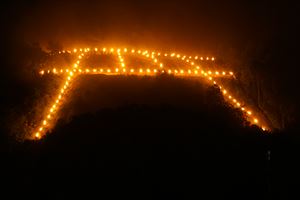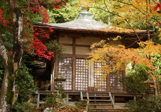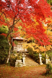 五山送り火の一つ鳥居形が点火される曼荼羅山(まんだら-やま)の南東麓に、護法堂弁財天(ごほうどう-べんざいてん)といわれる小社がある。堂宇は南東に面して建てられ、境内には神仏習合の痕跡がある。「嵯峨の弁天さん」とも呼ばれる。仙翁寺(せんのう-じ)跡という。秋の紅葉の頃が美しい。 祭神は不明。 ◆歴史年表 創建の詳細、変遷は不明。 飛鳥時代、伝承として、仙翁仙人(法道仙人)が万灯籠山の頂に仙翁寺を創建したという。 鎌倉時代、1257年、仙音寺(仙翁寺)での大納言・歌人・藤原隆親の逆修結願に、後嵯峨上皇(第88代)が御幸したという。(『経俊卿記』) 1259年、仙音寺で藤原隆親のために法華八請の仏会があり、後嵯峨上皇が御幸した。(『百錬抄』) 鎌倉時代、仙翁寺は廃絶したという。 江戸時代、1712年、愛宕山の一の鳥居の東の道傍に小堂があると記されている。(『和漢三才図会』) ◆法道仙人 飛鳥時代の伝説上の仙人・法道仙人(ほうどう-せんにん)。方道、空鉢仙人、仙翁(せんのう)。天竺(インド)霊鷲山(りようじゆせん)の五百持明仙の一人であり、真言密教を習得したという。第36代・孝徳天皇(在位 :645-654)の頃、日本に渡来したという。十一面観音信仰を伝えた。中世、播磨国の法華山一乗寺(兵庫県加西市)を中心に山岳寺院を開創した。呪術者であり方術を駆使し、「飛鉢の法」を行った。仏教と陰陽道を結びつけ、医薬を用いて病治癒した。649年、孝徳天皇の病を加持祈祷で治したという。 平安時代末、御嶽山清水寺(兵庫県加東郡社町)の文書が文献史料最古になる。鎌倉時代末-南北朝時代、播磨の山岳寺院20ヵ寺を開創したとされた。江戸時代、播磨、但馬、丹波、摂津の寺の開創に関わったとされた。法道仙人の系統から平安時代中期の伝説上の法師陰陽師・蘆屋道満(あしや-どうまん)が出現し、安倍晴明と対決したという。 ◆仙翁寺・護法堂弁財天・八幡宮・畑山の霊社 境内の北西にある曼荼羅山(まんだら-やま)は標高270m/278mあり、「万灯籠山(まんとうろう-やま/まんどうろ-やま/まんどろ-やま)」、「仙翁寺山(せんおうじ-やま/せんのうじ-やま)」の異名がある。 曼荼羅山とは伝承として、奈良時代-平安時代の僧・弘法大師空海(774-835)が、化野(あだしの)に両界曼荼羅を構想した際に、化野を金剛界とし、この山を胎蔵界としたことに因むという。 万灯籠山には、五山の送り火(8月16日夜)の際に、山の南東面に火座があり、鳥居形の送り火、鳥居大文字が行われている。山の名も、この盂蘭盆会、精霊送りの万灯籠に因むという。 仙翁寺山と呼ばれるのは、かつて山頂に「仙翁寺(せんおう-じ)」という寺が建てられていた。仙翁寺は転訛し、「仙園寺(仙音寺)」と称された。仙翁仙人(法道仙人)が創建したともいう。鎌倉時代、1257年、仙音寺での大納言・藤原隆親の逆修結願に、後嵯峨上皇が御幸したという。(『経俊卿記』)。同様に『百錬抄』『仁部記』『続史愚抄』などにも記されている。寺は、鎌倉時代に廃絶したという。 この仙翁とは、「仙翁花(せんのうげ/せんのうけ)」という花の名に由来するという。寺と花の栽培にも関係があるとされる。(『下学集』、室町時代中期、1444年)。中国から渡来した仙翁(法道仙人)という仙人が、薬草を寺で栽培していたという。山麓西にはいまも、鳥居本仙翁町(せんのう-ちょう)の地名が残されている。江戸時代には清凉寺の寺領の一つであり、仙翁寺村と呼ばれた。町内ではいまなお、「嵯峨仙翁花」といわれる花が継承して栽培されている。 護法堂弁財天は 仙翁寺山の麓にあることから、仙翁寺と何らかの関わりがあったという。その鎮守社だったともいう。護法とは、密教の奥義を極めた高僧、行者に使役する神霊、鬼神の意味を持つ。弁財天とは、仏教の尊格であるものの、神道の神、民間信仰とも混交した。仙翁寺は、鎌倉時代にすでに廃絶している。その、鎮守社だけが取り残されたともいう。なお、各地の弁財天は近代、1868年の神仏分離令以後、神社として寺より分離独立している。 室町時代前期、1413年、足利義満の母・紀良子の没後、仙翁寺跡に洪恩院(清凉寺南)の鎮守社として八幡宮を祀ったという。(『鳥居本八幡宮神社略記』)。江戸時代前期、1682年、仙翁寺は絶え、畑山の霊社が祀られており、仙翁寺の鎮守八幡と記されている。(『雍州府志』)。江戸時代中期、1712年、愛宕山の一の鳥居の東の道傍に小堂があると記されている。(『和漢三才図会』)。 護法堂弁財天と、八幡宮、畑山の霊社、小堂が関連しているかは不明。なお、護法堂弁財天の近くに鳥居本八幡宮が祀られている。 ◆仙翁花 仙翁華、仙翁花はナデシコ科の多年草で、学名は"Lychnis bungeana Senno."とされる。シーボルト・ツッカリーニの『日本植物誌』(1835-1870)にも学名"Lychnis senno Sieb. et Zucc."と記されている。現在、正確な学名は"Lychnis bungeana(D.Don) Fisch. ex Hemsl."とされている。中国原産とされ、古くより観賞用、特に茶花として栽培されてきた。高さは60cmほどあり、葉