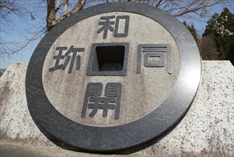 ![]() 「和同開珎(わどうかいちん)」の石碑 |