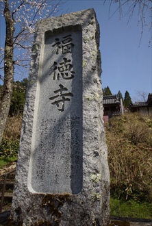 京北下中町、周山街道(国道162号線)の東、山腹に福徳寺(ふくとくじ)が建つ。奈良時代の僧・弓削道鏡に所縁ある寺ともいわれている。境内西に視界が開け、本堂前に樹齢380年という桜の大木が植えられている。山号は玉泉山という。 曹洞宗。本尊は薬師如来坐像。 ◆歴史年表 創建の詳細、変遷は不明。 奈良時代、711年、第45代・聖武天皇の勅願により、行基により創建されたという。当初は、現在地の北数100m、大谷山の口(大谷口)にあり、法相宗だったという。僧・弓削道鏡が七堂伽藍を創建したという。薬師七重塔が建立され、弓削寺(ゆげでら)と呼ばれたともいう。(寺伝)。 室町時代、1396年、焼失する。本堂と本尊は焼失を免れ、この時に庵に改めた。 安土・桃山時代、1579年、明智光秀は周山城築城の際に、近在の社寺を破却し用材を徴発した。当寺も破却され、以後、廃絶したという。 江戸時代、1615年、1681年とも、現在の境内の南西にある永林寺(京北町塩田)2世・居山桂宅が請われ、桂宅禅庵を富春庵(ふしゅんあん、中村富春庵)に改めたという。居山は中興開山とされた。以後、永林寺末8か寺の一つになる。 延享年間(1744-1747)、永林寺8か寺の一つとして中村富春庵とある。(「延享度曹洞宗寺院本末牒」) 1779年、焼失している。 1780年、現在の建物が再建された。 近代、1882年、福徳寺として再興された。 現代、1950年、薬師如来坐像が重文指定される。 ◆行基 飛鳥時代-奈良時代の僧・行基(ぎょうき/ぎょうぎ、668/667-749)。百済系の渡来人・高志(こし)氏。河内国の生まれ。父は高志才智、母は蜂田古爾比売。681年/682年、出家、官大寺で法相宗などを学ぶ。691年、高宮寺で具足戒を受けた。畿内に道場、寺を建立し、溜池、溝・堀、架橋、困窮者の布施屋建設などの社会事業を行う。704年、生家を家原寺とし住した。717年、民衆煽動と僧尼令に反した寺外活動の咎で、詔により弾圧を受ける。731年、弾圧を解かれた。732年、河内国狭山下池の築造に関わる。734年、東大寺大仏建立の詔が発布、勧進の任を務めた。736年、インド出身の僧・菩提僊那一行来日に際し太宰府で迎えた。738年、朝廷より行基大徳の称号が授与される。740年以降、東大寺大仏建立に協力する。741年、聖武天皇と恭仁京郊外の泉橋院で会見した。743年、東大寺大仏造営の勧進になった。745年、朝廷より日本初の大僧正位を授けられる。菅原寺(喜光寺)で亡くなる。地図の行基図を作成したという。東大寺「四聖」の一人。 80/82歳。 ◆道鏡 奈良時代の法相宗の僧・道鏡(どうきょう、700?-772) 。弓削道鏡。河内国の物部氏一族の弓削氏、弓削櫛麻呂の子。法相宗・義淵の弟子になり、良弁に梵語を学ぶ。内道場(宮中仏殿) の禅師に列せられた。762年、病の女帝・第46代・孝謙上皇(後の第48代・称徳天皇) に侍して看病し、以後、寵愛をうける。763年、少僧都、764年、孝謙天皇と藤原仲麻呂・淳仁天皇が対立した藤原仲麻呂の乱後、太政大臣禅師に任ぜられた。765年、法王。宇佐八幡宮神託事件では、宇佐神宮より天皇の位を道鏡に譲れとの神託があったとされたが、和気清麻呂により神託が虚偽とされ、道鏡の即位は阻止された。770年、称徳天皇病没後、造下野薬師寺別当(下野国) に左遷され、その地で没した。 ◆居山桂宅 江戸時代の僧・居山桂宅(きょざん-いたく、?-?)。詳細不明。永林寺2世。1615年、宅禅庵を富春庵(中村富春庵)に改めたという。中興開山とされた。 ◆仏像 保存庫に、平安時代後期作の「薬師如来坐像」(重文、もと国宝)が安置されている。右手は施無畏印、左膝上の掌に薬壺を載せる。宣字形裳懸座、舟形の板光背。胸部に翻波式衣文。桧材一木割矧造、漆箔。104.8㎝。 「持国天立像」(119.9㎝)(重文)、「増長天立像」(121.4㎝)(重文)が安置されている。ともに平安時代後期、12世紀(1101-1200)作の特徴(垂髷、鮨袖縁に花弁状切り込み、天冠台上縁が花形)が見られる。左手を上げ、右手を腰に当て、邪鬼を踏む。一木割矧造、かつては彩色が施されていた。もとは四天王像が揃っていたとみられる。 「阿弥陀如来坐像」(54.2㎝)は定印、浅い翻波式衣文、大半は一木造、内刳はない。漆箔。平安時代、10-11世紀(901-1100)作。「伝薬師如来坐像」(像高54.4㎝)も同様で、両手を欠失する。同じ作者の作とみられている。 「阿弥陀如来立像」(97.2㎝)、地蔵菩薩立像(95.6㎝)は、同時期に同一工房で造仏されたとみられている。一木割矧造、古色仕上げ、衣文は浅く簡素。平安時代、11世紀(1001-1100)作。なお、両肩、両体側、両手先、足先は後補による。 ◆石塚 境内背後にある「五輪塔(石塚)」は、弓削道鏡の墓ともいわれている。逸話が残る。道鏡は祈願のために春日明神を参詣し、そのお告げにより当寺にも祈願した。だが、3年の満願にも霊験がないとして、寺の仏像、経巻などを庭に放り、放尿するなどの乱暴狼藉を働いた。その後、病に陥ったため懺悔したところ回復した。だが、一時のようには戻らず故郷の河内に帰り養生した。称徳天皇の頃、宮中に