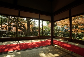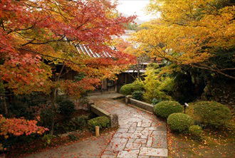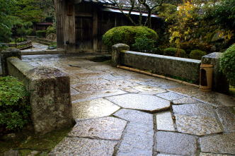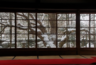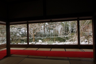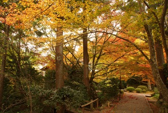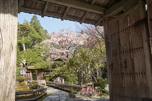 小野山から流れる律川を南にして宝泉院(ほうせん-いん)はある。勝林院の塔頭の一つになる。額縁庭園の庭が知られている。 天台宗、本尊は阿弥陀如来。 京都洛北・森と水の会に加わる。「ミシュラン・グリーンガイド・ジャポン1つ星観光地(五葉の松も1つ星)」(改訂第4版)に選ばれている。 ◆歴史年表 創建の詳細、変遷は不明。 平安時代、仁寿年間(851-854)、円仁が声明専門の寺として創建したともいう。 1012年/寿永年間(1182-1185)、創建されたともいう。大原寺(勝林院)住職の僧坊として、天台声明の道場として開かれた。 江戸時代初期、現在の伽藍が再建されたとみられている。 近代、1868年以降、勝林院の院号は、四坊総称から本堂の呼称になる。4院の内、勝林院の子院として宝泉院、実光院が残った。 ◆円仁 平安時代前期の天台宗の僧・円仁(えんにん、794-864)。男性。姓は壬生、名は円仁、諡号は慈覚大師。下野国(栃木県)の生まれ。9歳で大慈寺の広智に学び、808年、15歳で唐より帰国した比叡山の最澄に師事、その最期まで14年間仕えた。815年、東大寺で具足戒を受ける。比叡山で12年の籠山行に入る。5年後、法隆寺、四天王寺での夏安吾(げあんご)講師、東北への教化を行う。一時心身衰え、829年、横川に隠棲した。苦修練行を続け、夢中に霊薬を得て回復し、『法華経』書写を始め、小塔(如法堂)を建て写経を納めたという。838年、最後の遣唐使として渡り、9年間学ぶ。847年、帰国、仏典、金剛界曼荼羅など多数を持ち帰った。新羅声明を天台声明として取り入れ、その祖になる。848年、比叡山に戻り、円珍に密教を教えた。854年、第3世・天台座主に就く。862年、東塔に天台密教の根本道場・総持院を建立した。東京・瀧泉寺、山形・立石寺(円仁の遺体納葬の入定窟がある)、松島・瑞巌寺など多くの寺を開いた。『顕揚大戒論』ほか、唐滞在記である『入唐求法巡礼行記』(全4巻)を著す。没後、日本初の大師号(慈覚大師)を贈られた。入唐八家(最澄・空海など)の一人。70歳。 円仁は、法華経と密教は同等であり、円密は一致するとし、天台密教(三部密教、胎蔵部、金剛部、蘇悉地部)を確立した。また、浄土教を一乗思想として天台宗に取り入れた。 ◆鳥居 元忠 室町時代後期-安土・桃山時代の武将・鳥居 元忠(とりい-もとただ、1539-1600)。男性。通称は彦右衛門。三河国(愛知県)の生まれ。父・伊賀守忠吉(徳川家康の重臣)の次男。1551年、駿河今川氏の人質になっていた松平竹千代(徳川家康)に仕える。1558年、家康の初陣に従う。1560年、桶狭間の戦、1561年、大高城兵糧入れ、1569年、遠江掛川城攻略、1570年、姉川の戦に加わる。1572年、家督を継ぐ。三方(味方)ヶ原の戦で太股に銃弾を受け片足が不自由になった。1575年、長篠の戦、諏訪原城攻めなど出陣した。長篠の戦で銃弾により負傷したともいう。1582年、天正壬午の乱の戦功により、家康は甲斐国の谷村城主に任じた。1584年、小牧・長久手の戦で甲斐の守りを固めた。1586年、家康に供奉して上洛する。豊臣秀吉の推挙による諸大夫の叙任は、徳川氏臣として固辞した。1590年、小田原の役の武蔵岩槻城攻めで功をたてる。家康の関東入封に伴い、下総国矢作(やはぎ)城主になる。1600年、家康の会津出兵後、伏見城の留守居を命じられる。旧7月25日、五奉行中の石田三成らが家康に対して挙兵した伏見城の戦が始まる。西軍4万の大軍に対し、元忠は1800人の兵力で城に立て籠もる。旧8月1日、13日間の攻防の末、鈴木重朝との一騎打ちにより討死した。また、雑賀孫市に討たれたともいう。首は大坂京橋口に晒された。その際の血染めの床板は、「血天井」として各所に残る。戦は関ヶ原の戦いの前哨戦になった。62歳。 墓は知恩寺・龍見院(左京区)などにある。 ◆建築 山門、玄関、庫裏、客殿、客殿南東に旧玄関、客殿北西に茶室が2つがある。その北東に土蔵がある。 ◈「客殿(書院)」は室町時代後期、1502年の再建とされる。実際には、江戸時代初期の再建といわれている。廊下天井は「血天井」と呼ばれ、安土・桃山時代、1600年、伏見城で自決した鳥居元忠の板間が移された。 ◈「書院」は、大田邸(茨木市)の表書院として、近代、1906年に番匠・太田由太郎により建てられた。現代、2009年より当院に移され再興された。書院の一段上に離れ屋敷(広間)があり、渡り廊下を上段に設け、茶室(小間)に繋ぐ。渡廊下の傍らに、浴室がある。近代、1917年に梨本宮の来訪に際して設けられた。 ◆茶室 茶室「日新庵」は、近代、1905年に建てられた。大阪府茨木市の大田庄次郎が、裏千家・又玅斎(実質的には円能斎)に依頼した。棟梁は高槻の太田某による。現代、2013年に当院に移された。 四畳半、水間、物入、土蔵による。道具蔵と直結されている。離れ屋敷(広間)より渡廊下が水屋に繋がっている。 ◆庭園 ◈「盤桓園(ばんかん-えん)」は、客殿西の庭園をいう。立ち去りがたいの意という。額縁庭園とも称されている。西の庭は、客殿(20畳)の5間の長押間にある柱間、下の腰