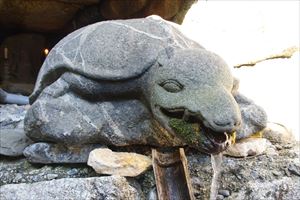 三条通(府道143号線)の日岡、車石公園近くに、南東方向に細い道が通じている。かつての東海道(旧三条街道)で、以前は現在よりも幅広い道があった。旧街道の峠を越えた崖の下に、亀の水不動尊(かめのみず-ふどうそん)と呼ばれる小さな祠が祀られ、いまも湧水がある。 江戸時代、不動尊の場所には、梅香庵(木食寺)と呼ばれる庵があったという。峠道を整備した木食僧・養阿(木食正禅)が結んだという。 ◆歴史年表 江戸時代、1717年、木食僧・養阿は、重罪人の霊を弔った。寒夜を選び30日間念仏回向し、京都の11無常所(六墓五三昧)を永代供養のために廻った。各所に名号碑を建立したという。九条山には、京都最大の粟田口刑場があり、この地に一丈六尺(4m)の特大の名号碑(粟田口大名号碑)を建立したという。(「安祥院文書」、1740年) 1734年、養阿は、旧東海道日岡峠の改修工事を京都町奉行所に願い出ている。 1735年、養阿は、日岡峠の改修工事の計画変更を願い出る。その後、百姓・善六の異議があり、元の計画に戻される。 1736年/1734年-1736年/1734年-1738年、養阿は、旧東海道日岡峠の改修工事を独力で行い、人馬道、車道を完成させる。この頃、峠付近に給水所(亀の水)が開かれ、営膳・接待のための「梅香庵(木食寺)」が建てられた。井水は「松養水」と名付けられた。日岡人馬道碑が立てられた。 1738年、日岡峠の普請が完成する。養阿は、牛車引廻道、人馬道の石標4本の作成の願出を奉行所に出した。 1744年、養阿は峠道脇に建てられていた「至芳庵」を2間東へ移築し、その改修(安祥院の竹簀戸門)を京都町奉行所に願い出ている。 1749年、養阿は、休息所の井水「松養水」を改修した。衛生向上のために亀の口型に改め、「量救水(りょうぐすい)」と改称した。 1763年、養阿は「梅香庵」で亡くなったという。その後、五条坂の安祥寺(東山区)に埋葬された。 1780年、養阿、梅香庵、量救水などについて記されている。(『都名所図会』) 1787年、木食寺と日岡峠のことが記されている。(『拾遺都名所図会』) 1808年、「梅香庵」が衰微したため、心学者・脇坂義堂が補助した。庵はその後、廃絶する。 1867年、京都町奉行所・平塚瓢齊により新道(現三条通)が改修される。 近代、1875年、京都府は日岡峠道を大改修した。 ◆養阿 江戸時代前期-中期の木食僧・養阿(ようあ、1687?-1763)。男性。俗名は村上茂八郎木食正禅、木食養阿。父・丹波国(京都府)桑田郡保津村の村上庄右衛門。幼くして父を亡くし、京都銀座の手代を経て、24歳で泉涌寺・雲竜院の恵雄により出家、朋厚房正禅と名乗った。1711年、高野山に上り、木食恵昌に師事、五穀を断ち、木の実を食する木食行に入る。甲賀郡安養寺(現嶺南寺)、高野山で木食大戒を修めて大阿闍梨になる。信濃の善光寺、美濃の国一円を行脚した。七条大宮の梅香庵に住し、念仏聖として洛中洛外の無縁墓地を回り供養、六字名号碑、日岡名号碑を建立した。1719年、勧進により弥陀如来像を造立し真如堂に安置した。享保年間(1716-1736)/1720年、狸谷不動院で入籠し木食行に入る。参詣者が絶えず、幕府の弾圧により五条坂に移る。1725年、安祥院を再興し、勧進により、1736年、日岡峠改修工事を着工する。1737年、旅人休憩所を設けた。1738年、日岡峠改修工事が完成する。1741年、法橋上人位を授与され、養阿に改めた。1747年頃、渋谷街道の修築工事を行い、峠道の管理所、休憩所の梅香庵(木食寺)を建てた。1752年、松明殿稲荷神社に井戸を掘る。石橋の架設、寺社の敷石などの土木工事も行う。1763年、安祥院(東山区)で即身仏になり墓塔に納められた。日岡・梅香庵(山科区)で亡くなったともいう。76歳?。 ◆日岡峠の改修 江戸時代、日岡峠は車道が抉れ損傷激しく、並行している人馬道との間に7-8尺(2m)ほどの段差が生じていた。雨天時には、道が泥濘し、牛馬、旅人の通行が困難を極めた。 江戸時代後期、1734年、養阿は京都町奉行所に日岡峠の改修工事の許可願を出した。車幅を拡張し、車道と人馬道の落差をなくすためのもので、費用は勧進によったという。 1736年-1738年、養阿は日岡峠の改修工事を行う。峠の北側にあった民家を買い取り立ち退かせ、道路幅を拡張した。峠の勾配軽減のために掘下げ工事を行う。その土を坂下に運び、道と周辺の人家の嵩上げ工事も行った。道が雨の日にぬかるまないように、道に小石を入れ、所々に石を敷いた。排水のための水抜きも設けた。京都に向かい道の左側に車道、右に人馬道が付けられ、同じ高さに修復された。 ◆亀の水不動尊 旧東海道の峠道途中、南側の山肌に「亀の水不動尊」(山科区日ノ岡ホッパラ町)といわれる祠が祀られている。岩を穿ちその奥に不動尊が安置されている。かつて、水神も祀られていたという。 名の由来は、石刻の亀の口(黒御影)より水が落とされていることによる。水は茶の湯にも用いられた。いまも湧水がある。地元の人の話によると、湧水地はかつて現在地ではなく、さらに奥の山中にあり、地域の生活用水