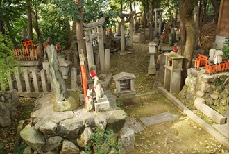 山科の西南部、丘陵地にある花山神社(かざん-じんじゃ)は、火神稲荷になる。「花山稲荷」、「お稲荷さん」、古くは「西山稲荷」などとも呼ばれた。大石良雄(内蔵助)ゆかりの神社としても知られ、後に「大石稲荷」とも呼ばれた。 祭神は、穀物神の宇迦之御魂大神(うかのみたまのおおかみ)、神大市比売大神(かむおおいちひめのおおかみ)、大土之御祖大神(おおつちのみおやのおおかみ)の3神を祀る。神大市比売大神は、宇迦之御魂大神の母神で、「稲荷さん(伏見稲荷大社)のおふくろ神様」ともいわれる。 ◆歴史年表 創建、変遷の詳細は不明。 平安時代、903年、第60代・醍醐天皇の勅命により創建されたという。(社伝) 第65代・花山天皇(在位:984-986)が篤く崇敬し、「花山神社」と称されるようになったという。後に、花山院家(清華家)にも勧請され、宮中でも祀られたという。 988年、第66代・一条天皇により社殿が再建された。 1000年頃、伝説的な刀工・三条小鍛冶六郎宗近が当社に参籠し、当地の埴土(はにつち)で鞴(ふいご)を造り、名刀「小狐丸」を完成させたという。 1174年、平清盛の嫡子・重盛が伏見稲荷大社に参詣した際に神託を受け、「朝日さす西の山端」の花山村に稲荷社を捜させた。その頃、当社境内が荒廃していたため、源太夫判官を普請奉行として南北300mの社地を定め社殿を復興したという。 1183年、盗賊により放火され、社殿、文書などすべてを焼失したという。 その後、この地は北に東海道、西に醍醐道が通じた要衝地であるため、城砦が築かれたともいう。 年代不詳、元慶寺(花山寺)の辺に住んだ僧・覚栄という人が、宝殿一宇を建立したという。 南北朝時代、貞和年間(1345-1349)/1340年頃、京都の一色六郎定員が勧進し、社殿を復興したという。 室町時代、天文年間(1532-1555)/1532年頃以後、参詣者で賑わうようになる。 江戸時代、元禄年間(1688-1704)/1700年頃、稲荷講が設立され、参詣で賑う。 1701年、現在の本殿が、大石内蔵助の義兄・進藤源四郎の寄進により建立された。 1703年以前、赤穂藩家老・大石内蔵助が、討入前に当社近くに隠棲した。参詣した折に、討入の大願成就を祈願したという。 1704年、和菓子屋「虎屋」が、稲荷社を深く信仰していたと記されている。(『山科花山稲荷由来基』) 1787年、花山稲荷社(大石稲荷)として当社のことが記されている。(『拾遺都名所図会』) 近代、1870年頃、勅命により村社になる。 現代、1945年、戦後に一時寂れる。宗教法人花山稲荷神社として、京都府神社会(現在の神社本教)に属し再興する。 2003年、鎮座1100年の式年大祭が執り行われる。鞘宮改修工事中に本殿内陣より江戸時代の棟札が見つかる。 ◆花山 天皇 平安時代中期-後期の第65代天皇・花山 天皇(かざん-てんのう、968-1008)。男性。師貞(もろさだ)。花山院。父・第63代・冷泉天皇、母・懐子(かいし)(藤原伊尹[これただ]の娘)の第1皇子。969年、立太子。比叡山、熊野などで修行する。正暦年間(990-995)、帰京し、東院(花山院)に住んだ。984年、第64代・円融天皇の譲位後に17歳で践祚(せんそ、皇嗣が天皇の地位を受け継ぐ)し、即位した。藤原頼忠(よりただ)が関白になる。986年、寛和の変により外祖父・右大臣・藤原兼家(道長の父)、道兼父子が退位を画策した。兼家の孫の皇太子・懐仁(やすひと)親王の即位を急ぐためだった。寵愛した身重の女御・忯子が亡くなる。天皇は、兼家に謀られて深夜に宮中を脱出し、元慶寺(花山寺)で出家し入覚と称した。懐仁親王(第66代・一条天皇)が即位する。その後、播磨国・書写山円教寺の性空(しょうくう)に結縁、比叡山、熊野などで仏道修行に励む。正暦年間(990-995)、帰京し、東院(花山院)に住んだ。996年、花山法皇襲撃事件では、法皇が藤原為光の娘に通い、誤解が元で中関白家の内大臣・藤原伊周・隆家に矢で射られる。41歳。 饗宴の禁制、荘園整理令を布告する。書写山、比叡山、熊野などの霊場を巡歴した。天皇の観音巡礼により西国三十三箇所巡礼が中興されたとの伝承が生まれる。「風流者」と称され、芸能、建築、絵画、工芸、造園に造詣が深かった。和歌に優れ、藤原長能(ながよし)らに『拾遺和歌集』を編じさせた。歌は『花山院集』に収められている。 陵墓は紙屋上陵(北区)にある。 ◆三条 小鍛冶 宗近 平安時代後期の刀鍛冶・三条 小鍛冶 宗近(さんじょう-こかじ-むねちか、?-1014?)。男性。三条小鍛冶、三条宗近、橘平太仲宗。河内(大阪府)生まれともいう。父・橘仲遠ともいう。東三条院の藤原兼家の番鍛冶だったともいう。人を討つことを謀り、薩摩・三重野(みしげの)に流罪になる。刀工・正国の弟子になり鍛冶を学んだともいう。永延年間(987-989)/989年、赦され京都三条粟田口に住み、三条小鍛冶と呼称された。名工と謳われた。安綱と共に、作品に銘を切った最古の刀工だった。作品に「宗近」銘の「御物」、「三条」銘の名物「三日月宗近」(国宝)は「天下五剣」の一つに数えられた。一門に兼永(かねなが)、国永(くになが)、有成(ありなり