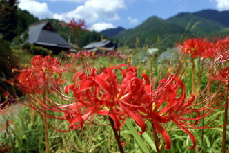 京都市内の北東にある盆地の大原(おおはら)は、かつて愛宕郡に属し大原荘、大原郷といわれた。古く「小原」と記された。 浄土信仰が盛んな頃には、大原は八瀬とともに「洛北浄土」と謳われた。古くより、薪炭を生産する「炭焼きの里」、「炭窯(竈)の里」としても知られ、良質の「小野炭」は人気を博した。「みかま木」は、宮中で使用されていた。 大原は、「ミシュラン・グリーンガイド・ジャポン 1つ星観光地」(改訂第4版)に選ばれている。 ◆歴史年表 平安時代、835年、大原は円仁により、根本道場の大原寺(だいげんじ)が開かれたことに始まる。 957年、「大原牧」として記されている。(「九暦」) 平安時代中期、延暦寺の俗化を嫌う僧たちが、この地に草庵、僧房を建てた。仏道修行地になる。 1013年、寂源は勝林院を開く。 1094年、良忍は来迎院を開く。 平安時代後期、大原は「炭窯里(すみがま-の-さと)」との別称があった。(『中右記』) 平安時代-鎌倉時代、天台宗の修行地になる。 中近世(鎌倉時代-江戸時代)、近在に8カ所の村があり、「大原八郷(おおはら-やごう)」と呼ばれていた。 近世(安土・桃山時代-江戸時代)、大原は若狭街道沿いの宿駅になる。『平家物語』の「大原御幸」の地として文人墨客が訪れた。 江戸時代中期、「小原(おはら)」より、「大原(おおはら)」へと長音化したという。 近代、1883年、戸寺(とでら)、上野、来迎院、勝林院、草生(くさお)、野村、井出の8村が合併して大原村になる。 1889年、小出石(こでいし)、百井(ももい)、大見、尾越(おごし)の4村を併合する。 1949年、京都市左京区に編入される。 ◆大原 大原は、豪族小野氏との関わりが深い。古名は「小野」と呼ばれ、現在も小野山にその名が残る。小野氏は、大和の王珥氏(わに、旧大和国添上郡和邇、現天理市)から、琵琶湖西岸の和邇(わに、滋賀県大津市)に勢力を移した。さらに大原、上高野一帯に移住したという。 平安時代前期、835年に、大原は円仁(794-864)により根本道場(後の勝林院)が開かれた。以来、天台声明が盛んな地になる。大原には、天台声明の総本山・魚山大原寺(ぎょざんだいげんじ、上ノ院、来迎院、下ノ院、勝林院)があった。 声明は梵唄(ぼんばい)ともいわれ、節をつけお経を唱える。古代インド、中国を経て日本にもたらされた。寺は、上寺(上ノ院)の来迎院、下寺(下ノ院)を中心とした勝林寺に別れる。鎌倉時代には上寺に49坊、下寺に50坊の寺があり隆盛を極めた。 大原の地名の由来については諸説ある。この地が中国浙江省の大源に似ており、寺院が建てられ、「大源」の「さんずい」を取り「大原」になったともいう。五台山念仏(声明)の地、山西省五台山の「太原(タイユワン)」に因み、比叡山を五台山に見なした。太原に似た大原の地を、「大原(だいげん)」と名づけ、「大原(おおはら)」になったともいう。また、平安時代中期、この地は牛馬の飼育地であり、その「大原牧」に語源があるともいう。 「魚山」とは、声明の道場とされた三千院一帯のことを意味し、声明のこともいう。これも、声明の始まりの地・中国五台山の一峰魚山、現在の山東省東阿の地名に由来しているという。 大原は、都から逃れた人々が隠れ住む地でもあった。平安時代前期の皇族・惟喬親王(これたか-しんのう、844-897)、平安時代中期の公卿・源顕基(みなもと-の-あきもと、1000-1047)、平安時代中期の僧・歌人・良暹(りょうぜん、?-?)、平安時代後期の学者・藤原貞憲(ふじわら-の-みちのり、1106-1159)、平安時代後期の貴族・歌人・藤原為忠の子息で「大原三寂(さんじゃく)」といわれた、官吏・歌人・寂念(じゃくねん、藤原為業、1114-?)、歌人・寂然(じゃくぜん、藤原頼業、?-?)、歌人・寂超(じゃくちょう、藤原為経、?-?)らがいた。 平安時代後期の武将・源義朝(みなもと-の-よしとも、1123-1160)、平安時代後期の公卿・藤原惟方(ふじわら-の-これたか、1125-?) 、平安時代後期-鎌倉時代前期の平親範(たいら-の-ちかのり、1137-1220)、平安時代後期-鎌倉時代初期の武将・源頼朝(みなもと-の-よりとも、1147-1199)、平安後期-鎌倉時代の高倉天皇中宮・建礼門院徳子(けんれいもんいん-とくこ、1155-1213)、鎌倉時代初期の上賀茂神社祠官・加茂氏久(?-?)などが隠棲した。鎌倉時代前期の歌人・随筆家・鴨長明(かもの-ちょうめい、1155-1216)も当初は大原に住している。 ◆大原女 平安時代後期、11世紀(1001-1100)後半から、大原の女性は、黒木(薫した薪)、柴漬け、木の芽炊きなどを都に売りに通った。白い縫文様の手拭を頭に被り、白地に紺の、小紋の着物に、腰に御所染めの赤い細帯、二巾半の前垂れ、手に白手甲掛、足に脚絆、白足袋、草鞋のいでたちだった。頭に薪(たきぎ)、柴(しば)などを載せて「黒木買わんせ。黒木召せ」と売り声を上げた。 この大原女(おはらめ)の柴売りの衣裳を考案したのは、建礼門院(1155-1214)に終生仕え、絶世の美女と謳われた平安時代後期-鎌倉時代の女官・阿波内侍(あわのないじ、?-? )という。内侍は日頃