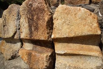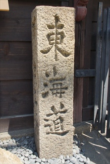 ![]() 旧東海道の街並、かつての街道は、現在の道幅よりも広かったという。 ![]() 車石広場(山科区日ノ岡)、牛車、車石、米俵が再現されている。ただ、牛車の形状、車輪の幅、車石の敷き方にも史実との食い違いがあるという。 ![]() 車石広場の車石 ![]() 擁壁の車石(山科区日ノ岡) ![]() 擁壁の車石、石垣に垂直方向に組み込まれている。京津国道改修工事の際に出た車石を壁にした。実際に敷設されていた車石の幅を再現しているといわれている。 ![]() 京津国道改良工事記念碑(山科区日ノ岡) ![]() 京津国道改良工事記念碑の台座に使われている車石 ![]() 京津国道改良工事記念碑、側面の轍跡 ![]() 亀の水不動尊(山科区日ノ岡坂脇町) ![]() 亀の水不動尊の亀の水、日ノ岡峠越えの人、牛馬に水を供していた。黒御影。 ![]() 日ノ岡宝塔(山科区日ノ岡)、新道(三条通)沿いにあり、車石を利用した縁石がある。 ![]() 修路碑(山科区厨子奥)、1877年京都府知事・槇村正直により建立された。改良工事では、日ノ岡峠(粟田口峠)の34m(11丈1尺4寸)の切り下げ工事を6kmにわたり行っている。 ![]() 【参照】閑栖寺(大津市横木)の再現された車石、車石の轍跡は摩耗により生じたといわれている。 道は2面からなり、車石より一段高い人馬道(歩道)が車道に隣接、並行する形で造られていた。写真では奥の段差部分になる。ここには砂利が敷かれた。二つの車石の間にも砂利が敷かれ、牛はこの部分を通った。 ![]() 【参照】閑栖寺にある牛車、車石の再現図、牛には日除けの菰を被せている。 ![]() 【参照】1875年頃の荒神橋付近の牛荷車、京都府の鴨川の掲示板より ![]() 【参照】旧東海道沿いに立つ石標(大津市横木) ![]() 【参照】旧東海道の峠道、(山科区八軒屋敷町付近) ![]() 【参照】京都国立博物館 ![]() 【参照】東海道車石、東山区九条山付近で出土、江戸時代。京都国立博物館蔵。 |