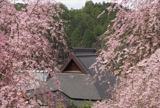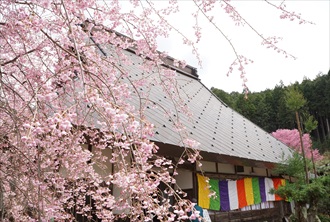 京北町の宝泉寺(ほうせん-じ)は、桜の名所として知られる。多くの経典・仏像を蔵している。山号は金華山という。 古義真言宗御室派、本尊は、十一面観世音菩薩。 古くより、病気平癒に霊験ありと信仰を集めた。北桑西国第27番霊場。 ◆歴史年表 創建、変遷の詳細は不明。 平安時代、1069年、開基は第71代・後三条天皇(1068-1072)の時ともいう。願主は不詳という。神護寺塔頭・宝泉院を下熊田(しもくまた)村に移し、金華山と号したという。初代開基第1世は心蓮上人ともいう。 1139年、僧・文覚は神護寺塔頭・宝泉院を開創し、宝泉寺の前身になったともいう。(寺伝) 1151年、泰親家の発願により『大般若経』が書写され、大和・真楽寺に納められる。 南北朝時代、1356年、高雄山・神護寺の心蓮上人は、十一面観音菩薩を本尊とし、この地、下熊田村に宝泉院を遷し開基した。寺号を宝泉寺に改めたともいう。(寺伝)。以来、病気平癒に格別の霊験ある寺として信仰を集めた。 室町時代、1462年、別当・祐慶の時、『大般若経』は修復された。(『大般若経』巻末奥書) 1533年、『大般若経』12巻が盗難に遭う。 1560年、『五部大乗経』は、これまで下熊田・成願寺の所有になっていた。(「辛櫃蓋裏の銘」)。この時、宝泉寺に移された。 江戸時代、1835年、「天雅(あめわか)神社に三間四方の阿弥陀堂あり」と、寺社奉行へ報告する。 近代、1868年、神仏分離令により『大般若経』、阿弥陀如来坐像が宝泉寺に移る。 1881年、 旧阿弥陀堂が改修されている。(棟札) 1894年、密厳寺が廃寺になり、不動尊・仏具などが宝泉寺へ移された。 現代、1996年、大慈殿(阿弥陀堂)が完成した。 ◆文覚 平安時代後期-鎌倉時代前期の真言宗の僧・文覚(もんがく、1139-1205)。男性。俗名を遠藤盛遠(もりとお)。「荒法師」といわれた。摂津国(大阪府・兵庫県)の武士の家に生まれる。幼くして両親を失う。摂津源氏傘下の摂津国・渡辺党の武士で、上西門院(第74代・鳥羽天皇皇女)に仕える北面の武士になる。1159年、18歳で従兄弟で同僚の渡辺渡(わたる、渡辺左衛門尉源渡)の妻、袈裟御前に横恋慕し、誤って殺したことから出家し、文覚と称した。那智、熊野で修行する。荒廃していた神護寺に入り、1173年、再興のために、第77代・後白河天皇に勧進を強訴し、不敬罪で伊豆国に配流された。その地で知り合った源頼朝に平家打倒の挙兵を促したという。盛遠は、密かに京都に戻り、後白河院の院宣を得て頼朝に伝えた。1192年(1185年)、鎌倉幕府成立後、頼朝、後白河院の庇護を受ける。神護寺再興を果たし、東寺 高野山などの修復も手がけた。頼朝の死後、1199年、後鳥羽上皇(第82代)により佐渡国へ再び流罪となる。一度許されて京都に戻る。1205年、謀反を疑われ三度目となる対馬に流され客死した。65歳。 弟子に神護寺復興を継いだ上覚、孫弟子に高山寺開山の明恵らがいる。 ◆心蓮 南北朝時代の僧・心蓮(?-?)。詳細不明。神護寺の僧。1356年、神護寺塔頭・宝泉院を下熊田村に移し、十一面観音を秘仏本尊とし、寺号を宝泉寺を開山したという。1069年の宝泉寺の初代開基第1世は心蓮上人ともいう。 ◆仏像・石像 ◈ 本尊は秘仏の木造「十一面観世音坐像」になる。年代不詳。 ◈ 木造「阿弥陀如来坐像」(京都市指定登録文化財)は、平安時代後期作になる。かつて神護寺宝泉寺にあった。南北朝時代、1356年に下熊田村の西方山麓にある旧村社・天稚(あめわか)神社(祭神は天雅彦命[あめのわかひこのみこと]、天津国魂命[あまつくにたまのみこと]、下照比咩命[したてるひめのみこと)境内の阿弥陀堂安置された。(五部大乗経辛櫃蓋裏書)。宝泉寺は、当社の神宮寺(別当寺)だったともいう。近代、1868年の神仏分離に伴い当寺に遷されている。「定朝」風、小粒の螺髪、やや伏目がちの相好、肩から腹部にかけての衣文はゆったりとし、膝の衣文も整う。 ◈ 木造「二天王立像(多聞天・増長天)」2体は、平安時代作。 ◈ 木造「不動明王坐像」は江戸時代作。木造「弘法大師坐像」は江戸時代作。 ◈ ほか、「唐銅造誕生佛像」、「脇仏多聞天立像」、木造「地蔵菩薩坐像」などが安置されている。 ◈ 境内安置仏として、銅造「修行大師立像」、石造「子育水子地蔵尊立像」、「御丈」、「子安地蔵尊」、「無縁石仏群」などがある。 ◆建築 ◈大慈殿(阿弥陀堂)について、江戸時代後期、1835年には、「天雅神社に三間四方の阿弥陀堂あり」と、寺社奉行へ報告したという。この頃、阿弥陀堂は天雅神社内にあり、その後、移されたともいう。 ◈山門は木造、瓦葦、朱塗り。 ◈ほか、本堂・庫裡、護摩堂(不動堂)、客殿・廊下、寺務所兼庫裡、宝蔵、子安地蔵堂、極楽橋などがある。 ◆文化財 ◈ 平安時代-室町時代作の「古写大般若経」534巻。 ◈ 南北朝時代作の「古版五部大乗経」162巻。 ◈ 鎌倉時代作の絹本著色「三蔵法師像」1幅。 ◈ 鎌倉時代作の絹本著色「弘法大師画像(天台大師像)」1幅。 ◈ 室町時代中期作、絹本著色「釈迦十六善神像」1幅。(京都市指定登録文
