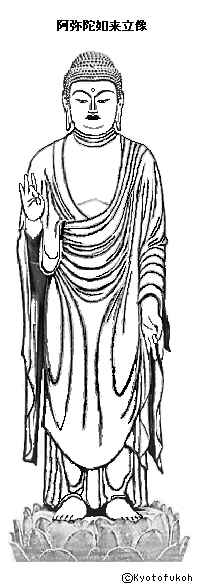 鷹峯に遣迎院(けんこう-いん/けんごう-いん)はある。長屋門が北面して建つ。山号はない。 浄土真宗遣迎院派本山、本尊は釈迦如来・阿弥陀如来の二尊を安置する。 京都七福神めぐりの福禄寿。 ◆歴史年表 創建の詳細、変遷は不明。 鎌倉時代、1201年/1199年/1234年、証空により開山された。当初は、伏見大路の東(東山区、東福寺前三ノ橋南)にあったという。(『拾遺都市名所図会』『山城名跡志』)。証空に帰依した九条道家が住処し、後に仏閣としたともいう。浄土、天台、真言、律の四宗兼学道場になる。「四箇本寺」(ほかに、廬山寺、二尊院、般舟院)のひとつに数えられた。発遣釈迦、来迎弥陀の二尊を本尊とした。(『拾遺都市名所図会』)。 1247年、証空は遣迎院で亡くなる。 安土・桃山時代、1575年、定額寺になる。(『山城名跡巡行志』) 1583年/1585年/天正年間(1573-1592)、二寺に分割され、一寺は旧地(東山区)に残り、浄土宗西山禅林寺派の南遣迎院になる。当遣迎院(北区)の前身は北之辺町(きたのべ、京都御所の東方、上京区寺町通り広小路上る)に移され天台宗となる。(『山城名勝志』)。以来、禁裏御内仏殿として寶祚無窮(ほうそむきゅう)を祈る道場になる。 年代不詳、弘空が中興した。 江戸時代、江戸・寛永寺の末となる。朱印寺領53石、寺地を得る。 1708年、焼失した。 1788年、焼失する。 現代、1955年/1954年、現在の寺地(北区)へ移る。天台宗より、浄土真宗遣迎院派の本山になった。 ◆証空 平安時代後期-鎌倉時代中期の僧・証空(しょうくう、1177-1247)。男性。善恵房証空。鑑知国師、西山国師、弥天国師。京洛の村上源氏の流れをくむ久我一門源親季の長男。加賀(石川県)に生まれたともいう。1185年、内大臣・久我通親の猶子になり、道元の兄弟に当たる。1190年、14歳で出家した。当初、親季は許さず、一条戻橋での橋占いにより、僧が法華経普門品の偈を唱えながら橋を渡ったことから許したという。浄土宗開祖・法然の弟子になり、善恵房證空と名付けられた。以後、法然臨終までの23年間師事した。1198年、法然が九条兼実の請により、浄土宗の根本聖典「選択本願念仏集」を撰述した際に勘文の役を務めた。1199年、法然に代わり九条兼実邸で選択集を講じる。1207年、法然とともに遠流になる。慈円に預けられ京都に留まる。「七箇條起請文」を制定しその第四位に署名した。日野の願蓮に天台学、政春に台密も学ぶ。1211年、太子御陵に二重の塔を建て仏舎利を納めた。1212年、法然没後、1213年、東山小坂から慈円の譲りを受け、善峯寺中尾・蓮華寿院に入り、道覚法親王に譲り北尾往生院(三鈷寺)に移った。1215年、「観経玄義分観門義」を開講する。1217年、仁和寺経蔵より善導大師の「般舟讃」を発見した。1221年、往生院で初の不断念仏を行う。仰木の公円より伝法灌頂を受ける。1225年、慈円の臨終の善知識になる。1227年、嘉祿の法難に際し流罪を免がれる。西園寺公経の北山邸で念仏勧進をする。1229年、奈良・当麻寺の「観経曼陀羅」に感得した。寛喜年間(1229-1231)、関東から陸奥へ游化する。1230年、西山・三鈷寺塔を建てる。1231年、浄蓮寺、鵜野木光明寺を開基、復興した。1243年、第88代・後嵯峨天皇の勅により歓喜心院を創建する。1244年、生瀬浄橋寺の梵鐘鋳造になる。1247年、後の天台座主道覚法親王のために「鎮勧用心」を述べた。宮中で度々講じ円頓戒を授与した。70歳。 建立した主な寺院は、西山善峯寺北尾往生院、歓喜心院、浄橋寺、遣迎院など11寺になる。浄土宗西山義の派祖。 ◆快慶 平安時代後期-鎌倉時代前期の仏師・快慶(かいけい、?-?)。詳細不明。男性。号は安阿弥(あんなみ)、法名は安阿弥陀仏。署名は仏師快慶、丹波講師(たんばこうじ)、越後法橋、巧匠安阿弥陀仏、法橋快慶、法眼快慶など。運慶の父・康慶の弟子、運慶の門弟ともいう。1183年、運慶が発願した法華経の結縁(けちえん)者の一人になる。1189年、 興福寺旧蔵・弥勒菩薩像(ボストン美術館蔵)、建久年間 (1190-1199) 、 東大寺復興の造仏に運慶を助けた。1192年/1194年頃、重源の建立した兵庫浄土寺・阿弥陀三尊像、1201年、東大寺・僧形八幡神像、1202年、東大寺俊乗堂・阿弥陀如来像、建仁年間(1201-1204)、東大寺公慶堂・地蔵菩薩像、奈良・文殊院・文殊五尊像(?)、1203年、運慶らと合作の代表作である東大寺南大門・金剛力士像などがある。1236年まで造仏した。 慶派仏師であり、運慶と並び鎌倉時代を代表した。30点近くの作品、現存遺作は20点ある。作風は藤原様式、宋の新様式を取り入れた。写実的、優美で安阿弥様式と呼ばれ、後世まで影響を与えた。東大寺中興の重源(ちょうげん)に師事し、阿弥陀信仰し熱心な浄土教信者だった。 ◆仏像 ◈ 本尊の「阿弥陀如来立像」(90/98.9cm)(重文)は、鎌倉時代前期、1194年-1199年までの作による。仏師・快慶の作による。足枘(あしほぞ)に「巧匠アン(安)阿弥」の銘が入る。快慶の若い時代の作品になる。 胎内には「建久二年(1194年)」年記の願文・阿弥陀如来の「摺り仏」が68枚