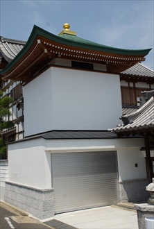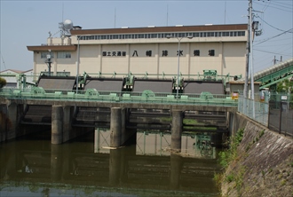 ![]() 【参照】国土交通省八幡排水機場、寺に隣接して支流の大谷川に設置されている。本流の木津川は境内の北に流れている。 木津川の水位が低い際には、支流の大谷川の水は堤防下にあるトンネル(樋門)を通して木津川に流されている。大雨などで木津川の水位が上昇した際には、トンネルを閉じ、ポンプにより本流に支流の水を揚げることで、支流周辺の逆流による洪水を防ぐ目的がある。 |