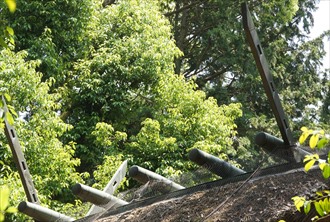 宇治の神明宮に、神明神社(しんめい じんじゃ)はある。鳥居は、旧奈良街道(府道15号線)に西面して建つ。 神明皇大神宮(しんめいこうたいじんぐう)のほか、付近の栗隈山(くりくまやま、栗駒山)に因み栗隈(くりこ)神明、栗子天神、宇治神明、今神明、今伊勢などとも呼ばれた。 祭神は、内宮に天照大神(あまてらすおおかみ)、豊秋津姫命(とよあきつひめのみこと)、手力雄命(たぢからおのみこと)、外宮に豊受大神(とようけのおおかみ)、瓊瓊杵尊(ににぎのみこと)、天太玉主命(あめのふとたまぬしのみこと)を祀る。 ◆歴史年表 創建、変遷の詳細は不明。 飛鳥時代、674年、第40代・天武天皇の詔により、栗子山に神殿を造営し、市杵嶋比売命を祭神として神明神社と称したという。(社伝) 平安時代、794年、第50代・桓武天皇は、平安京遷都に際し、当地が都の巽(南東)に当たることから伊勢皇大神宮を勧請し、この地を宇治と号し度々行幸する。(社伝) 904年、第60代・醍醐天皇の詔により新たに社殿を造営した。伊勢内・外皇大神宮、雨宮・風宮、稲倉魂命の分霊を祀り、歴代天皇が行幸したという。 1099年、洛南の神明山(現在地)に遷される。 南北朝時代、1336-1392年、戦乱により社殿は大破する。 室町時代、1416年、宇治今伊勢と記されている。(『看聞御記』) 1442年、「参詣宇治神明」の名が記され、文献初見になる。(『康富記』) 1479年、日野富子が参詣する。これに端を発し、宇治郷と三室戸の民衆間での争論が起こる。(『晴富宿禰記』)。この際に、三室戸寺、橋寺放生院などが焼かれる。 ◆伊勢神宮 伊勢神宮との関わりが深いという。境内には神明造の社殿があり、伊勢内宮、外宮を勧請している。 狂言「栗駒神明」では、平安時代、904年、伊勢・刺史服部俊文章に老翁に化身した神が顕れ、それを祀ったという。狂言「今神明」に、「此頃、宇治へ神明の飛ばせられたが、これを今神明と名付けて、夥しい参詣がある」とあり、伊勢神宮が飛び神(飛来神)としてこの地に飛来し、宇治の今神明の勧請由来になったという。 境内北西には伊勢田の地名が残り、延喜式内の伊勢田神社が祀られている。当社が伊勢神宮の御厨(みくりや)に勧請されたともいう。御厨の厨とは本来は台所を意味し、供御(くご)物や神饌を供し、その後、食料品調達にかかわる所領(神領地)になったともいう。ただ、詳細不明。 ◆末社 ◈末社の八社がある。右より、猿田彦社・猿田彦命(さるたひこのみこと)、春日社・ 天児屋根命(あめのこやねのみこと)、稲荷社・倉稲魂命(うかのみたまのみこと)、天満宮・菅原道真(すがわらのみちざね)、級長津彦命(しいなつひこのみこと)、風宮・雨宮・級長戸辺命(しいなとべのみこと)、蛭子社・言代主命(ことしろぬしのみこと)・底筒男命(そこつつおのみこと)・中筒男命(なかつつおのみこと)、住吉社・表筒男命(うわつつおのみこと)・神皇産霊大神(かみむすびのおおかみ)、結社・高皇産霊大神(たかみむすびのおおかみ)を祀る。 ◈境内神社、羽拍子神社に、天照大神(あまてらすおおかみ)・級長津彦命(しいなつひこのみこと)・級長津姫命(しいなつひめのみこと)を祀る。 ◆明智光秀 安土・桃山時代、1582年、本能寺の変後、山崎の合戦に敗れた明智光秀は、山階(山科)に落ち延びる際に当社境内に立ち寄ったという。光秀が隠れたという井戸跡があり藻隱井戸、藻隱池として残されている。 ◆樹木 宇治市名木指定のツツジ科スノキ属シャシャンボ(小小坊)、モチノキ科ナナミノキ(七実の木)、 ブナ科クリ亜科シイ属のシイ(宇治市銘木百選)の大木がある。高さ28m、幹回り2.7m、樹齢300年。 ◆年間行事 元旦祭(1月1日)、左義長(1月15日)、節分祭(2月3日)、弁天祭(7月15日)、大祭(10月第2日曜日)、御火焚祭(12月16日)。 月次祭(毎月1日)。 *年間行事は中止・日時・内容変更の場合があります。 *年号は原則として西暦を、近代以前の月日は旧暦を使用しています。 *参考文献・資料 案内板由緒書、『京都府の地名』、『京都大事典』 ![]() ![]() ![]() ![]() ![]() ![]() ![]() |