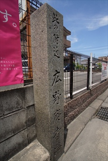 ![]() 「広野廃寺跡」の石標、交通量の多い道路沿いに石標だけが立つ。 |