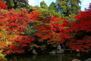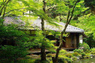 旧若狭街道(国道367号線)沿いの上高野、比叡山の山容を望む高野川の畔に蓮花寺(れんげ-じ)はある。境内は1300坪(4297.5㎡)を有している。 洛北蓮華寺、池の寺とも呼ばれる。山号は帰命山(きみょうざん)という。 天台宗延暦寺派の末寺、本尊は釈迦如来像。 京都洛北・森と水の会。御朱印が授けられる。 アメリカ合衆国の日本庭園専門誌"Sukiya Living Magazine, The Journal of Japanese Gardening"の「しおさいプロジェクト」「日本庭園ランキング(数寄屋生活空間)」に、2003年に第4位に選ばれている。 ◆歴史年表 創建の詳細、変遷は不明。 年代不詳、かつて時宗の古寺だったという。旧地は、下京区、西八条塩小路(七条塩小路とも)付近にあり、方一町の寺地を有し、西来院という院号だったという。当初は時宗だった。 室町時代、応仁・文明の乱(1467-1477)で焼失する。その後、荒廃した。 江戸時代、現在地(左京区)は、加賀藩、前田利家家老・今枝重直(1554-1628/1627)の隠居所になっていた。重直は、藩主・前田利家の娘・富姫(八条宮智忠親王妃)に従い一時、京都に移り住んだ。 1662年、重直の孫・今枝近義は、祖父(父・直恒とも)の遺志を継ぎ、菩提のために草庵を寺とした。蓮華寺をこの地に移し、開山は延暦寺・実蔵坊実俊(じつぞうぼう-じっしゅん)を迎えたともいう。寺名は、境内にあった廃寺の寺号に由来するともいう。再興の際には多くの文人が協力した。 1666年、近義は庭池に木下順庵銘文、石川城篆額の顕彰碑を立てている。 1681年、黒川道祐が訪れ『北歴覧之記』中『近畿游覧誌』に記している。 1786年、『拾遺都名所図会』に境内図が描かれている。 近代、1872年まで、境内の土蔵は寺子屋として使われていた。 現代、1978年、仏師・西村公朝により、本堂天井に龍図が復元された。 ◆今枝 重直 室町時代後期-江戸時代前期の武将・今枝重直(いまえだ-しげなお、1554-1628/1627)。男性。初名は定直、通称は弥八。 美濃(岐阜県)の生まれ。父・斎藤道三の家臣・今枝忠光。織田信長に仕え、1570年、姉川の戦い、1571年、伊勢長島、1575年、長篠の戦いに加わる。1582年、信長没後、次男・信雄に仕え、1584年、小牧・長久手の戦いに出陣。後、豊臣秀吉・秀次に仕えた。1594年、従五位下内記に叙任、豊臣姓を賜る。1595年、秀次没後、前田利長に仕えた。1598年、日置忠勝の5男・直恒を養子とした。1600年、関ヶ原の戦、1614年、大坂冬の陣、1615年、大坂夏の陣に加わる。1619年、隠居し、家督を直恒に譲った。金沢で亡くなる。74歳。 仏法に深く帰依し、得度後、宗二居士と称した。茶道を嗜み、石川丈山、狩野探幽と交わり、この地に隠棲した。 ◆富姫 江戸時代前期の富姫(ふうひめ、1621-1662)。女性。院号は真照院。加賀(石川県)の金沢城に生まれる。父・加賀藩主・前田利常、母・珠姫の4女。1642年、叔母・東福門院の養女になり、22歳で八条宮智忠親王に輿入れする。親王の御殿(桂離宮)は、前田家の援助により修造された。子はなく、1654年、後水尾院(第108代)皇子・穏仁親王が猶子にる。1662年、親王が亡くなり、同年に死去した。41歳。 墓所は野田山前田家墓所(金沢市)にある。 ◆実蔵坊 実俊 江戸時代前期の天台宗の僧・実蔵坊 実俊(じつぞうぼう-じっしゅん、?-?)。詳細不明。男性。延暦寺僧だった。1662年、洛北の蓮華寺の開山になる。 ◆今枝 直恒 安土・桃山時代-江戸時代前期の武将・今枝 直恒(いまえだ-なおつね、1587-1652)。男性。本姓は日置(へき)、通称は民部。 父・池田家家老・日置忠勝、母・今枝忠光の娘の5男。1598年、12歳で伯父・前田家家老・今枝重直の養子になる。前田利長、利常に仕えた。1614年、大坂冬の陣、1615年、大坂夏の陣に出陣した。1623年、世子光高の守役、1645年、光高の臨終に際し世子綱紀の守役になる。65歳。 ◆今枝 近義 江戸時代前期の武将・今枝 近義(いまえだ-ちかよし、1614-1680)。男性。名は直治、直賢、直友、通称は弥平次、民部。父・今枝直恒。重直の孫。1635年、元服した。1642年、宗門奉行になる。1652年、父・直恒の死去により家督相続。加賀金沢藩の5代藩主・前田綱紀に仕え、家老になる。1657年、明暦の大火の際に、江戸藩邸藩士を指揮し防火した。1662年、蓮華寺を再興した。1667年、病のため家老職を辞職する。1675年、隠居し養子・直方に家督を譲る。1662年、桂宮別荘の完成に協力した。66歳。 茶道に造詣深く、人脈広く、寺の再興の際には、文人・石川丈山らが尽力した。 ◆山号 山号の蓮華寺とは、蓮華蔵に由来する。蓮の花は仏の世界を表す。奈良東大寺の盧舎那仏は本源として蓮華座に坐し、自身を変化させた千の釈迦が各世界で説法しているとしている。 現在地に同名の廃寺があり、その名を継承したともいう。 ◆仏像 ◈本堂、須弥壇に「阿弥陀三尊」を安置する。本尊「釈迦如来坐像」(60㎝)は、螺鈿の厨子内に納められている。金銅仏であり、左右に黄檗宗・隠元の簾「本源宗正派」「覚苑永長春」が掛る。螺鈿は明朝初期作、側面上部に松竹梅図、下部に花鳥図が施されている