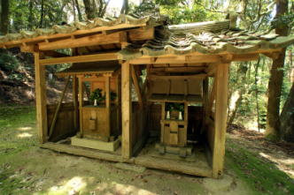 観音寺の北西に隣接して、小社の地祇神社(ちぎ じんじゃ)がある。かつて「ちのき」「くにつやしろ」「くにつかみ」「くにかみ」「くにつ/くにつじんじゃ」などと記された。 祭神不明。また、本殿に大国主神(おおくにぬしのかみ、地主神)、息長帯比賣命(おきながたらしひめのみこと、神功皇后)、大山祇神(おおやまつみのかみ、山王権現)を祀るともいう。 末社・天満宮に菅原道真(すがわらのみちざね)、祈雨神社に彌都波能売命(みずはのめのみこと)、白山神社を祀るともいう。 式内社。平安時代、『延喜式神名式(延喜式神名帳)』(927)中「十四座 大三座 小十一座」の「地祇神社」に比定されている。 ◆歴史年表 創建、変遷の詳細は不明。 かつて、観音寺境内の北東に祀られていたという。 平安時代、927年、『延喜式神名式(延喜式神名帳)』中「十四座 大三座 小十一座」の「地祇神社」に比定されている。 室町時代、天文年間(1532-1555)、現在地に遷されたという。(社伝)。その後、権現大明神と呼ばれたともいう。 1533年、北に「御霊天神」、南に「地主権現」として描かれている。(「興福寺別院山城国綴喜郡観心山普賢教法寺四至内之図」、1428年改正、1533年再画) 近世(安土・桃山時代-江戸時代)、「大御堂(観音寺)」、「大講堂」が描かれ、「普賢教寺」の東、南北に「御霊社」「地主社」が描かれている。(「筒城郡朱智荘佐賀荘両惣図」) 江戸時代、1711年、「大御堂(観音寺)」の西山麓、北に鎮守社の「権現大明神」、南に「地主権現」が記されている。(『山州名跡志』) 1754年、「地祇ノ神社」は「権現大明神」とされ、「地主権現ノ社」は式内社として記されている。(『山城名跡巡行志』) 近代、明治期(1868-1912)初期、地主神社と呼ばれていた。(案内板) 1877年、式内社に比定された。また、古くより地主神社と誤って呼ばれていたと記されている。(「綴喜郡神社明細帳」) ◆祭神 祭神についても諸説あり、大国主神(地主神)、息長帯比賣命(神功皇后)、大山祇神(山王権現)とみられいる。 社伝として御霊天皇(第26代・継体天皇)、山王権現(第14代・仲哀天皇の神功皇后)ともされた。(「綴喜郡神社明細帳」)。 ◆大西敏元・大西屋敷 石段に室町時代、「天文十幸丑年(1541年)卯月吉日 大西備前守」の銘が残る。 大西備前守とは室町幕府15代将軍・足利義昭の家臣・大西敏元であり、大御堂西の山麓、上村に大西屋敷(大西館)が築かれていた。(「筒城郡朱智荘佐賀荘両惣図」「興福寺別院山城国綴喜郡観心山普賢教法寺四至内之図」) 1573年、宇治・槇島城の戦いで敏元は義昭とともに織田信長との戦い敗れ、事実上、室町幕府は滅亡する。その後、敏元は義昭とともにこの地に逃れたという。さらに、敏元は同年の河内・若江城の戦いで城に籠り討たれたという。 ◆建築 瓦葺の覆屋の中に東面し本殿がある。三間社流造、板葺、正面三間・奥行一間。 ◆文化財 境内の石灯籠に安土・桃山時代、「永禄二年(1559年)」の銘がある。 ◆年間行事 歳旦祭(1月1日)、例祭(10月8日)。 *年間行事は中止・日時・内容変更の場合があります。 *年号は原則として西暦を、近代以前の月日は旧暦を使用しています。 *参考文献 『京都・山城寺院神社大事典』、京田辺市教育委員会の案内板 ![]() ![]() ![]() ![]() |