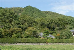 ![]() 立札と畑 ![]() 小倉山 |