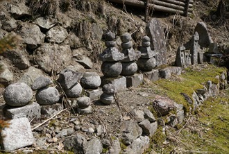 大森東町に高い石垣が組まれ、山を背にして長福寺(ちょうふく-じ)の本堂が建てられている。石段脇には長福禅寺の寺号碑が立つ。山号は普門山という。惟喬親王の墓と伝えられる塔が立つ。 臨済宗大徳寺派、本尊は観音菩薩。 ◆歴史年表 創建、変遷の詳細は不明。 江戸時代、明暦年間(1655-1658)初年頃、すでに寺は存在したという。当初は真言宗だったという。 江戸時代、1640年以降?、東河内村の宗門改は、当寺と大森・寿仏寺が行っていた。 1683年、端堂紹粛(たんどう じょうしゅく)により禅宗に改めて創建された。(「禅宗臨済派寺院明細写」) 元禄期(1688-1704)前後、大徳寺末になり、禅宗に改めたとみられる。 年代不明、圭峯宗主座元(?-1692)が中興したという。 1718年、長福寺住持が、無住の寿仏寺(大森)の合併を願い出る。(「宗旨請判覚」・「寿仏寺文書」) 1788年、寿仏寺維持のため、長福寺の檀家13軒が分配になる。(「寿仏寺文書」) ◆端堂紹粛 江戸時代の臨済宗の僧・端堂紹粛(たんどう-じょうしゅく、?-1713)。大寂法明禅師、克々子。大徳寺226世。大徳寺・正受院2世。1683年、長福寺を禅宗に改め創建したという。84歳。 ◆惟喬親王 平安時代前期の皇族・惟喬親王(これたか-しんのう、844-897)。惟高、通称は小野宮、水無瀬宮(みなせぐう)、法名を素覚。父・第55代・文徳天皇、母・紀氏の右兵衛督(うひょうえのかみ)・紀名虎(きのなとら)の娘・静子の第1皇子。文徳天皇は当初、惟喬親王を皇太子にしようとした。850年、右大臣・藤原良房の娘・明子との間に第4皇子・惟仁(これひと)親王(第56代・清和天皇)が産まれ、惟仁親王が皇太子になった。先例のない皇位継承は、文徳天皇の外祖父・良房への気兼ねと、惟喬親王の母が藤原一門ではなく、紀氏の出自だったためともいう。857年、元服し四品になる。皇位を失った惟喬親王は、858年、大宰師、弾正尹、常陸太守を歴任した。868年、母紀氏のために『法華経』『普賢観経』を書写し冥福を祈った。872年、上野太守などの役職を歴任した。病になり出家し、素覚と号し洛北小野に隠棲する。惟仁親王立太子の際に出家したともいう。岩屋山金峯寺に宮を建て住んだともいう。耕雲入道と名乗り、宮を耕雲寺(高雲禅寺)としたともいう。在原業平、紀有常らも親王の元を訪れたという。その後、病に倒れる。死期迫り、御所の川上の地を避け、さらに北にある小野・大森の地へ移り亡くなったという。歌は『古今和歌集』ほかに入集。54歳。 詩歌に優れた。皇太子争いについて説話として、良房と名虎は、各々真言僧真雅と真済とに修法を行わせた、両人が相撲をとって決着をつけたともいう。親王は、各地に木地師の祖との伝承が残る。 近江・小椋(おぐら)に隠棲して木地屋の職祖になったともいう。 ◆墓 ◈ 「五輪塔」は、かつて20基立てられていた。現在は、完全なものは3基が残る。一つには室町時代後期、1566年の銘が入る。 ◈ 「宝篋印塔(惟喬親王塔)」がある。室町時代初期作による。平安時代の第55代・文徳天皇第1皇子・惟喬親王(844-897)の墓ともいう。江戸時代には十三重塔として知られていた。『伊勢物語』中、親王小野郷幽居の伝承により、後世、同名の小野の地に立てられたとみられている。高さ1.6m。 ◆宗門改 江戸時代、当寺でもキリシタンの宗門改(しゅうもんあらため)が行われていた。宗門改は、キリシタン弾圧のために、各自が属する宗教を検査した制度であり、江戸時代前期、1612年、江戸幕府はキリスト教禁制にした。1640年以降、宗門改役が置かれ取締を行った。 東河内村での宗門改は、当初、長福寺と大森の寿仏寺が行い、後に長福寺のみで行った。 *年号は原則として西暦を、近代以前の月日は旧暦を使用しています。 *参考文献・資料 『京都・山城寺院神社大事典』、『京都市の地名』、『昭和京都名所図会 4 洛西』、『京都大事典』、『京都隠れた史跡の100選』 、ウェブサイト「コトバンク」 ![]() ![]() ![]() ![]() ![]() ![]() ![]() |