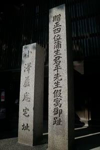 ![]() 「贈正四位 蒲生君平先生仮寓御趾」の石標 ![]() 「小沢蘆庵宅址」の石標 ![]() |