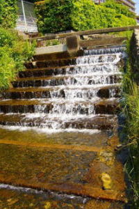みそそぎ川は、鴨川から取水されており、鴨川の分流になる。 ◆歴史年表 近代、1894年、琵琶湖疏水の完成後、鴨川の夏の風物詩だった床は、東岸は中止になった。 1911年、四条大橋に市電が開通した後、中州の床も中止になる。 1935年、「昭和10年大洪水」により、大きな被害が出た。 1936年-1947年、大規模な鴨川の河川改修工事、「千年の治水」が行なわれた。この河川改修工事は、鴨川だけではなく、御室川、天神川、高野川などでも施工された。ただ、第二次世界大戦中のことであり、資材、資金不足などにより工事は難航した。1943年に国の援助が得られ、完成を見たのは戦後のことだった。鴨川の補修工事により、人工水路みそそぎ川も生まれた。 その後、みそそぎ川の上に納涼床を設けるようになった。 ◆流路 みそそぎ川は、賀茂大橋下流西岸で鴨川から取水され、鴨川河川敷(高水敷)を暗渠になって南へ流れる。川名の由来は、「賀茂神社の西の賀茂川の別名」(田中緑紅『京の三名橋(中)四条大橋』)という。みそそぎ川の初出は、近代、1936年4月の京都府臨時府会とみられる。 丸太町橋下流で、川は地上に姿を見せ、鴨川河川敷を間に挟む形で、鴨川と並行してさらに南下している。 二条大橋下流で、みそそぎ川から高瀬川が分流される。高瀬川は西進し、すぐに南下して流れる。 みそそぎ川は、三条、四条の繁華街を鴨川と並行して流れ続け、五条大橋手前付近で再び鴨川に合流している。 ◆自然 二条大橋-丸太町橋間で、みそそぎ川と鴨川の間に遊歩道が続いている。みそそぎ川河畔には、桜並木なども植栽されており、四季折々で鴨川散策を楽しむことができる。 近年では、6月上旬に二条大橋上流付近で、ゲンジボタルの生息も確認されており、調査・保護活動も行なわれている。ただ、個体数は多くない。 オランダガラシ(クレソン)、ミゾソバなどの植物も水辺に見られる。 ◆アニメ ◈アニメーション『四畳半神話大系』(原作・森見登美彦、制作・マッドハウス、 2010年4月-7月、全11話)の第4話「弟子求ム」で、みそそぎ川の分岐点が登場する。 *年号は原則として西暦を、近代以前の月日は旧暦を使用しています。 *参考文献・資料 『京都の地名検証』、『日本風景史』、ウェブサイト「アニメ旅」 |