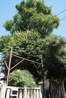 上京区主税町(しゅぜい-ちょう)に、小祠の大宮姫命稲荷神社(おおみやひめのみこと-いなり-じんじゃ)がある。「大宮姫(おおみやめ)稲荷神社」「貧乏稲荷」とも呼ばれていた。 かつて平安宮の内部に祀られた宮中神32座のうち、旧平安宮内に残された唯一の神が祀られているという。 祭神は大宮売神(おおみやめのかみ、大宮咩命)を祀る。 式内社。平安時代、『延喜式神名式(延喜式神名帳)』(927)中「宮中神祇官西院坐御巫等祭神 23座(並大)御巫祭神 八座 並大 月次新嘗 大宮売神」が祀られているという。 ◆歴史年表 創建、変遷の詳細は不明。 平安時代、807年、初代・神武天皇(前660-前582)の時、皇天二祖(天照大神、高皇産霊神)の詔のままに神籬を建て、8神を奉斎したという。以来、祭祀が始まったという。(『古語拾遺』) 927年、『延喜式』神名帳では、「御巫祭神八座 並大 月次新嘗」として、式内大社に列するとともに、月次祭・新嘗祭では幣帛に預かると記されている。 年代不詳、中世(鎌倉時代-室町時代)末期とも、御巫祭神八座中の大宮神が当地に遷されたという。(『新撰京都名所図会』、1894年) ◆大宮売神 御巫祭神の8神は、神祇官西院(斎院)中の八神殿に祀られていた。かつて神祇官西院は、現在地の東にあったとみられている。8神は、天皇の守護神であり、重要な神として『延喜式』神名帳の全国3132座の筆頭に記された。 8神とは、神産日(かみむすひ)、高御産日(たかみむすひ)、玉積産日(たまづめむすひ)、生産日(いくむすひ)、足産日(たるむすひ)、大宮売(おおみやのめ)、御食津(みけつ)、事代主(ことしろぬし)になる。 このうち大宮売神は、日本神話の高皇産霊神(たかみむすびのかみ)の子・太玉命(ふとだまのみこと)の娘になる。天の石窟(いわや)より新殿に遷った天照大神(あまてらすおおみかみ)に仕えたという。宮中の平安守護神、また、君臣の間を取り持つ神ともされた。祈年祭、大殿祭(おおとのほがい)でも祀られた。 八神殿は、童女の神職、御巫(みかんなぎ)のうち、大御巫(おおみかんなぎ)により奉斎された。奈良時代には2人、平安時代に大御巫は3人が置かれた。最も重要な祭祀は、新嘗祭前日に行われた鎮魂祭になる 神祇官の祭祀は中世(鎌倉時代-室町時代)にはすでに衰退する。室町時代後期、応仁・文明の乱(1467-1477)で八神殿焼失後、宮中に再建されることはなかった。安土・桃山時代、1590年、吉田神社境内(現在の八神殿跡)と白川家邸内に八神殿が建てられ、代替とされた。江戸時代前期、1609年に吉田神社を神祇官代として制定した。 近代、1869年、神祇官の神殿が創建され、八神殿の8神のほか、天神地祇、歴代天皇の霊も祀られた。1872年、神祇官は宣教のみを行うことになる。八神殿は神祇官より宮中へ遷され、歴代天皇の霊も、宮中の皇霊殿へ遷された。1872年、八神殿8神は天神地祇に合祀され、八神殿の名は「神殿」に改められた。現在、神殿は皇居(東京)の宮中三殿の1つとして存在する。 8神のうち大宮売神を祀る当社は、平安宮の内部に祀られた宮中神32座のうち、旧平安宮内部に残された唯一の神とされる。大宮売神の関連社としてほかに、大宮売神社(京丹後市)がある。 ◆宮内省坐神 境内のある現在地(上京区主税町)付近は、平安宮(平安京大内裏)内に位置し、内裏の南にある。地名の主税町(しゅぜい-ちょう/ちから-ちょう)も、平安京大内裏の役所の一つ主税寮の跡地だったことによるという。(『坊目誌』)。律令制下の民部省に属し、田租を司り、倉廩(米蔵)の出納を監督した。 かつて、主税町の北東に園韓神社(そのからかみ-しゃ)が祀られていたという。 宮内省坐神(大3座)といわれる神、園神社(そののかみの)1座、韓神社(からのかみの・からかみ)2座になる。園神は園池を守る神、また、園韓神は疫病を防ぐ神ともいう。前者は大物主、後者は少彦名ともいう。平安京以前より祀られていた神だったともいう。園韓神は、古くより大内裏にあり、平安京遷都に際して「この地に坐して帝皇を護り奉らん」と宣託があったという。(『古事談』)。室町時代後期、応仁・文明の乱(1467-1477)で焼失した。 なお、近世(安土・桃山時代-江戸時代)、醒ヶ井通高辻上ルに園韓神社があったともいう。(『京羽二重』) ◆樹木 境内に隣接する道の半分を塞ぐ形で、ムクノキの巨木を残している。 *年号は原則として西暦を、近代以前の月日は旧暦を使用しています。 *参考文献・資料 『京都はじまり物語』、『京都市の地名』、『稲荷信仰と宗教民俗』、『京都 神社と寺院の森』、『京都歴史案内』、京都市考古資料館-京都市埋蔵文化財研究所、ウェブサイト「コトバンク」 ![]() ![]() ![]() ![]() ![]() |