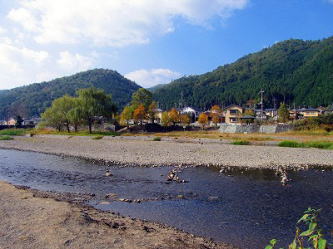 ![]() 庄田橋から見た北方向、柊野砂防堰堤 ![]() ![]() 中央の丸い小山が神山 ![]() 堰の上流周辺 |