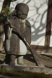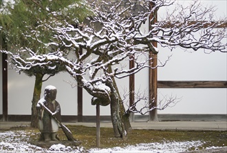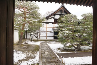 建仁寺境内の南東に塔頭・霊洞院(れいとう-いん/れいどう-いん)がある。山門に「専門僧堂」と掲げられており、多くの建仁寺管長、老師を輩出してきた。 臨済宗建仁寺派。本尊は観音菩薩。 ◆歴史年表 南北朝時代、1334年、建仁寺26世・高山慈照(こうざん-じしょう)の没後、弟子・海雲禅慧らがその塔所として創建した。高山は追請開山とする。 1352年、延暦寺と宮辻子の敷地を巡り争う。 1355年、霊洞庵など6塔頭が焼失した。 1357年、延暦寺が霊洞庵の宮辻子の領有を認める。 室町時代、1552年、兵火により焼失する。 1555年、希三宗燦(きさん-そうざん)により再建された。 江戸時代、1853年、妙心寺63世・全室慈保(ぜんしつ-じほ)により現在の建物が再建される。(『坊目誌』) 1859年、全室慈保が再興するともいう。 近代、1891年、僧堂常住になり、護国院を禅堂にする。 1898年、建仁寺派の専門道場を併置している。 1925年、竹田黙雷(たけだ-もくらい)が退隠し、「左辺亭」が建てられる。以後、本派の専門道場が置かれた。 現代、1974年、庭園が国の名勝に指定された。 ◆高山 慈照 鎌倉時代中期-南北朝時代の臨済宗の僧・高山 慈照(こうざん-じしょう、1266-1344)。男性。俗姓は菅原、法名は心鏡、諡号は広済禅師。天台学、律を学ぶ。無本覚心(むほん-かくしん)の法嗣になる。南浦紹明(なんぽ-じょうみん)、高峰顕日(こうほう-けんにち)らに師事した。紀伊・大慈寺の住持、万寿寺、建仁寺26世。建仁寺・霊洞院に移る。1346年、堆雲軒の勧請開山になった。1340年、足利直義の求めにより祈雨し、2日目に降雨させたという。菅原道真の命日に自らの死を予言し果たした。78歳。 法灯系。 ◆海雲 禅慧 鎌倉時代後期-南北朝時代の臨済宗の僧・海雲 禅慧(?-?)。詳細不明。男性。高山慈照の弟子。1334年、建仁寺・霊洞院を創建する。 ◆希三 宗燦 室町時代後期の臨済宗の僧・希三 宗燦(きさん-そうざん、?-?)。詳細不明。男性。宗璨。1555年、建仁寺・霊洞院を再建した。 ◆全室 慈保 江戸時代後期の臨済宗の僧・全室 慈保(ぜんしつ-じほ、?-?)。詳細不明。男性。妙光寺63世、建仁寺348世。文化年間(1804-1818)、建仁寺・大中院の堂宇を再建した。 ◆竹田 黙雷 江戸時代後期-近代の臨済宗の僧・竹田 黙雷(たけだ-もくらい、1854-1930)。男性。名は宗淵(そうえん)、別号は左辺亭(さへんてい)、黙雷禅師。壱岐(長崎県)の生まれ。大陽庵の良堂について出家し、国分寺の洪堂、博多・崇福寺の蘭陵に師事した。亀井南溟に漢学を学ぶ。上洛し、妙心寺の越渓守謙(えっけい-しゅけん)、美濃・正眼寺の泰竜に学ぶ。福岡・梅林寺の東海猷禅(とうかい-ゆうぜん)の印可を受けた。建仁寺・石窓紹球(せきそう-じょうきゅう)の法嗣になる。荻野独園(おぎの-どくおん)の信任を得て建仁寺の僧堂を開創した。1892年、建仁寺派管長になる。高台寺本堂、建仁寺山門などを建立した。1925年、霊洞院に退隠し、「左辺亭」が建てられる。著『黙雷禅話』、『暗号密令』など。76歳。 ◆建築 隠寮「左辺亭(さへんてい)」は、近代、1925年に竹田黙雷が退隠し、境内に信者の寄進により建てられる。二階建、四畳半、一畳台目の茶室がある。 ◆文化財 ◈紙本墨書「読漢書詩」1幅(重文)がある。鎌倉時代、13-14世紀の第92代・伏見天皇(1265-1317)の宸翰になる。東京国立博物館寄託。 ◈紙本墨書「村庵霊彦墨跡 尺牘」は、室町時代後期、1474年作。紙本墨書「石室善玖墨跡 道号偈」は、南北朝時代、1386年作。紙本墨書「高山慈照墨跡 福成寺条々規式事」は南北朝時代、1338年作。紙本墨書「中巌祖稜墨跡 盆石記」は南北朝時代、1372年作。紙本墨書「伯師祖稜墨跡 秉払上堂謝語」は、室町時代中期、1436年作。紙本墨書「天隠龍澤墨跡 希三号」は、室町時代後期、1483年作。紙本墨書「常庵龍崇墨跡 玉成号」は、室町時代後期、1522年作。紙本墨書「道旧疏」は、室町時代後期、1528年。紙本墨書「希三宗燦墨跡 秉払上堂謝語」は、室町時代後期、1549年作。紙本墨画「達磨図 白隠自画賛」は、江戸時代(18世紀)作。 ◈絹本墨画淡彩「山水図」は明時代、15世紀の鶴亭筆。絹本墨画淡彩「三鷹図」は、明時代、15世紀作。絹本墨画「二老観泉図」は清時代、17世紀の周震筆。紙本墨画淡彩「山水図」は、清時代、1856年の彪新錦筆。 ◈紙本墨書「朝鮮国書契」は、江戸時代前期、1643年作。 ◈紙本著色「三教図」は、江戸時代前期、1670年、狩野探幽画による。岳南の賛がある。孔子・釈迦・老子が描かれている。 ◈「青磁陰刻牡丹唐草三足香炉」は、元、14世紀作。 ◈紙本淡彩「琴棋書画図」6曲1双(重文)は、安土・桃山時代、16世紀の海北友松筆による。京都国立博物館寄託。 ◈紙本墨書「唐人物花鳥押絵貼屏風」6曲1隻は、安土・桃山時代、16世紀の海北友松筆による。 ◆障壁画 安土・桃山時代、16世紀の海北友松筆、絹本著色「花鳥図襖」4面がある。 ◆庭園 書院の南、東に観賞式庭園(国の名勝)がある。矩形で800㎡の広さがあり、江戸時代中期、享保年間(1716-1735)に作庭されたとみられ