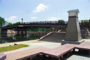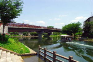 ![]() 伏見港公園 ![]() 濠川(ごうかわ、ほりかわ宇治川派流)、伏見城の濠と運河の役割を担った。 ![]() 十石舟 ![]() 角倉了以翁水利記功碑、出合橋付近 ![]() 船宿寺田屋