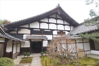 妙心寺境内の南東に、境外塔頭・大雄院(だいおう-いん)がある。 臨済宗妙心寺派。水庵派。本尊は釈迦如来。 ◆歴史年表 安土・桃山時代、1603年、石河光忠(いしこ-みつただ)は、父・光元、祖父・光重以来の香華所(こうげしょ)として創建した。開祖は慧南玄譲(えなん げんじょう)による。蘭叔玄秀(らんしゅく-げんしゅう)が勧請開祖になる。以後、石河家の菩提塔頭(香華所、位牌所)になった。創建時には伏見城の石河屋敷の建物を移築した。 江戸時代、1670年、堂宇を新造する。 1726年/1727年、光忠の百年の遠諱(おんき)に伴い、現在の方丈(客殿)、書院が再建された。 現代、2003年、客殿、書院、庫裡、表門が、京都府指定文化財に指定された。 ◆慧南 玄譲 安土・桃山時代の僧・慧南 玄譲(けいなん-げんじょう、?-?)。詳細不明。男性。水庵宗掬(すいあん そうきく)(美濃鏡島城主・石河家)の法孫になる。 ◆蘭叔 玄秀 室町時代後期-安土・桃山時代の僧・蘭叔 玄秀(らんしゅく-げんしゅう、?ー1576?)。詳細不明。男性。慧南玄譲(けいなん-げんじょう)の法祖。石河光忠の叔父。妙心寺53世、美濃鍋島・乙津寺住持、妙心寺・大雄院の勧請開祖になる。著『酒茶論』『蘭叔録』。 ◆石河 光忠 安土・桃山時代-江戸時代前期の武将・石河 光忠(いしこ-みつただ、1594-1628)。男性。大雄院殿。父・播磨国竜野城主・石河光元(豊臣家臣)、母・お亀の方(正法寺・志水宗清の娘、後の徳川家康側室)。1608年、徳川家康に召し出され、1610年、美濃国と摂津国に所領を得る。家康の命により、1612年、尾張藩主の異父弟・徳川義直に付属し、名古屋城代になる。1614-1645年、大坂の陣で義直に従い出陣した。35歳。 ◆石河光元 安土・桃山時代の武将・石河光元(いしこ-みつもと、?-1601)。詳細不明。男性。父・石河光重。子に光忠。豊臣秀吉に仕え、1577年、播磨・竜野城主になる。1600年、関ヶ原の戦いで当初は石田方に付き、途中で徳川方に属した。戦後、領地を失うが、藤堂高虎のとりなしにより助命され、家門も残す。 ◆柴田 是真 江戸時代後期-近代の漆工家・画家・柴田 是真(しばた-ぜしん、1807-1891)。男性。名は順蔵、字は儃然(たんぜん)、別号は令哉(れいさい)、対柳居。江戸の生まれ。父・商人・柴田市五郎。1817年、11歳で初代・古満寛哉(こま-かんさい)に蒔絵を学ぶ。1822年、鈴木南嶺に四条派の絵を学ぶ。1827年、浮世絵師・歌川国芳が弟子になる。1830年、京都四条派・岡本豊彦の弟子になる。香川景樹に歌学、国学、頼山陽に漢字を学ぶ。1831年頃、江戸に帰る。1841年、東北各地を巡る。蒔絵や漆絵で、青海波塗を復活し、新技法も創始した。1873年、ウィーン万国博覧会で進歩賞牌を受賞した。1890年、帝室技芸員。浅草の称福寺に葬られた。85歳。 下絵から蒔絵までの全工程を手がけ、是真の超絶技巧の漆工、漆絵、絵画は欧米人に好まれた。評判になった王子稲荷神社奉納の額面著色「鬼女(茨木)図」がある。 ◆石河 正久 近現代の臨済宗の僧・石河 正久(いしこ-しょうきゅう、1937-)。詳細不明。男性。東京の生まれ。京都工芸繊維大学、同大学院(蚕糸生産学・家蚕生理、遺伝学)修了。妙心寺派専門道場の岐阜・瑞龍寺専門道場で修行、臨済宗妙心寺派妙心寺塔頭・大雄院住職。 蚕繭紙(さんけんし)研究で知られ、九州大学農学博士号取得した。蚕繭紙研究所所長。 ◆安川 如風 現代の宮絵師・安川 如風(やすかわ-にょふう、1946-)。京都の生まれ。 1965年、京都市立日吉ヶ丘高校美術科日本画専攻を卒業した。 1969年、武蔵野美術大学造形学部美術科日本画専攻を卒業する。 1974年、川面美術研究所に入所した。 1977年、独立し、安川如風宗教美術研究所を設立する。 1986年、株式会社宮絵師安川を設立(社寺彩色工房)する。 著『風の如く』『文様それぞれ』ほか。 社寺彩色、仏画、修復事業など絵付けにたずさわる。主な作品は、上賀茂神社絵馬複製、高野山大圓院襖絵、松尾大社随神修復、妙心寺大雄院襖絵、浄土真宗本願寺派久宝寺御坊顕証寺蓮如上人四幅絵伝など。 ◆仏像 客殿に、本尊の「釈迦如来像」を安置している。 ◆建築 安土・桃山時代、1603年の創建時には、伏見城の石河屋敷の建物を移築した。江戸時代前期、1670年に堂宇を新造している。 現代、2003年に、客殿、書院、庫裡、表門が、京都府指定・登録文化財に指定されている。 ◈「方丈(客殿)」は、江戸時代中期、1726年(1727年とも)に、光忠の百年の遠諱に再建された。単層、寄棟造。 なお、創建時の方丈は、珍しい重層だった。 ◈「書院」は、江戸時代中期、1726年(1727年とも)に、前身建物の材料を用いて再建された。 ◈「庫裏」は、江戸時代末に改造されている。 ◈「土蔵」は、置屋根造になる。 ◈「東司(とうす)」は、御手洗であり、江戸時代中期、1726年に建てられた。 ◆障壁画 ◈方丈(客殿)に障壁画72面がある。江戸時代後期、1832年頃、柴田是真(しばた-ぜしん、1807-1891)筆による。1830年に是真は四条派を学ぶために京都で学んだ。その時、当院を訪れ描いたという