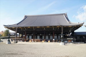 東本願寺(ひがし-ほんがん-じ)は、境内が28000坪(9万2000㎡)の広さを有している。南北400m、東西200mある。正式には「真宗本廟(しんしゅう-ほんびょう)」、「本願寺」とも呼ばれる。「東本願寺」「お東さん」とも呼ばれる。末寺8500余り、門徒500万人といわれている。 真宗大谷派本山。本尊は阿弥陀如来。 「ミシュラン・グリーンガイド・ジャポン 1つ星観光地」(改訂第4版)に選ばれている。 ◆歴史年表 鎌倉時代、1224年、親鸞が『教行信証』を著し、同年を開宗年にする。 1263年、宗祖・親鸞没後、東山西麓鳥辺野北大谷に石塔が建てられ遺骨が納められた。 1272年頃、親鸞の末娘・覚信尼(かくしんに)により遺骨を改葬し、東山吉水北(大谷の西)へ移す。(『親鸞聖人絵伝』)。六角の「大谷廟堂」が建てられ、影像が安置された。場所は、鳥辺野北大谷、現在の知恩院三門北の崇泰院付近とされ「元大谷」と呼ばれる。この地は、覚信尼の夫・禅念の敷地であり、廟堂の建物は門徒共有だった。 1277年、禅念没後、敷地は覚信尼により門徒中に寄進され、覚信尼は初代留守職に就いた。以後、子・覚恵、孫・覚如が相承する。 1287年、「本願寺」の寺号が記されている。文献初出とされる。(「専修寺文書」) 1312年、法智発起により廟堂に扁額「専修寺(せんじゅじ)」を掲げ、延暦寺山門の抗議により撤去する。(『存覚上人一代記』)。また、3世・覚如は、墳墓堂の大谷影堂を専修寺にする。だが、比叡山延暦寺の抗議により、後に「本願寺」に改称した。 1321年、「本願寺」の寺号になる。付文書にその名があり、文献初出とされる。(「本願寺文書」) 南北朝時代、1333年、宮護親王により祈願所になる。 1336年、足利尊氏の兵火で焼失した。 室町時代、1457年、8世・蓮如が継職する。 1465年、「寛正の法難」では、延暦寺西塔の衆徒により、祇園感神院犬神人の指揮下、大谷本願寺は破却された。以後、蓮如は各地を移動する。 1466年、近江・金森合戦以来、越前、越中、加賀、奈良、三河、伊勢長島など各所で一向一揆が起きる。 1469年、大津南別所に顕証寺を建て親鸞影像を遷す。 1467年、近江堅田に移る。 1471年、蓮如は越前吉崎に坊舎を建立する。 1475年、蓮如は越前吉崎を退去した。 1478年/1480年、蓮如は山科本願寺を建立する。 1480年、御影堂が完成した。親鸞影像を顕証寺より遷す。 1496年、蓮如は大坂石山に坊舎(石山本願寺、大坂本願寺)を建立する。 1532年、山科本願寺は、日蓮宗宗徒と細川晴元(六角定頼とも)により破壊される。(『私心記』) 1533年/1532年、証如は大坂石山に移る。親鸞聖人木像も遷される。本寺(大坂御坊)と定める。(『私心記』) 1542年、阿弥陀堂棟上が行われる。 1559年、11世・顕如の時、本願寺は門跡に列した。 1570年、顕如は、織田信長より石山本願寺(大坂本願寺)退去を命じられるが拒否する。顕如は、信長と以後11年にわたる石山戦争(石山合戦、1570-1580)を続ける。 安土・桃山時代、1580年、石山戦争で石山本願寺(大坂本願寺)は敗北し焼失した。長男・教如は抗戦を主張したが、顕如は第106代・正親町天皇の仲介を受け入れ信長と和解し、紀伊鷺森に移る。教如は義絶になる。 1582年、信長没後、豊臣秀吉は本願寺に好意的な態度を示す。秀吉は大坂天満の土地を与え、ここに本願寺が建立された。 1583年、和泉貝塚に移る。 1585年、秀吉は大坂、天満の地を本願寺に寄進し、寺は移る。 1591年、秀吉は京都・六条堀川に土地を与え、寺は移転した。当初の予定地は、下鳥羽から淀にかけての地域だったという。 1592年、11世・顕如没後、教如は秀吉により寄進された七条堀川(現在の西本願寺の地)の本願寺門跡になった。その後、母・如春尼が秀吉に提出した「譲り状」に端を発し、秀吉により教如は門主の座を奪われる。阿弥陀堂、御影堂が建立された。(「本願寺文書」) 1593年、秀吉により、三男・准如(1577-1631)が門主になることが認可される。 1596年、慶長の大地震により被災している。 1602年、徳川家康は、隠居していた教如と接触する。本願寺の西、烏丸七条(現在の東本願寺の地)に、12世宗主(現在は門首)・教如の隠居寺が置かれた。家康により方4町が寄進とされ、本願寺(東本願寺)が建立された。別立され、本願寺は東西に分裂した。家康は、本願寺を東西に分裂させ、教団弱体化を謀ったともされている。 江戸時代、1603年、教如の旧住坊より移築した建物を仮御影堂にした。阿弥陀堂が建てられ、親鸞の形見御真影(形見御影)が上野国厩橋(まやばし)・妙安寺(みょうあんじ)より遷されている。教如は新屋敷・仮御堂に移る。(『粟津日記』『内真記』)。本堂(阿弥陀堂)が建てられ遷仏された。親鸞廟所が建てられた。(『集古雑編』) 1604年、御影堂が建立される。鐘楼、本堂門、勅使門が建てられる。 1617年、唯善が大谷本廟を経て鎌倉・常盤に持ち去っていた親鸞影像も遷された。徳川秀忠が了解する。 1619年、秀忠は、寺地の安堵状を下した。この頃より本願寺と公称した。(『敷地寄進状(武家厳正録)』)