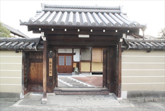 東寺境内の北にある宝菩提院(ほうぼだい-いん)は、東寺塔頭の一つであり、塔頭・観智院と並び別格子院になる。山号は八幡山という。 東寺真言宗。準別格本山。 ◆歴史年表 鎌倉時代、1279年、創建されたという。開祖は、東寺の二長者亮禅による。かつて塔頭・観智院とは櫛笥小路(くしげ-こうじ)を挟み左右対称の位置にあった。 近代、1881年、総黌(洛南高校)開学に伴い現在地に移転した。 ◆二長者亮禅 鎌倉時代後期の真言宗の僧・二長者亮禅(にのちょうじゃ-りょうぜん、?-?)。詳細不明。男性。第三長者とも。1279年、東寺大悲心院で西院流(にしのいんりゅう)の宏教弟子・能禅より伝法灌頂を受けた。その法流を嗣ぐ。1279年、東寺・宝菩提院の開山になる。 ◆住持 住持は観智院と同じく教王護国寺別当職に補せられる。二長者亮禅など修行体系の理論と実践の事相・教相を輩出し、「西院流能禅方(さいいんりゅうのうぜんかた、東寺方)」の法流本山になる。 西院流能禅方は、広沢流より別れ、西院(仁和寺)法印信証を祖とした。 ◆建築 ◈「門」は旧地の洛南高校に残されている。 ◈「三密蔵(さんみつぞう)」は経蔵であり真言聖教の宝庫だった。 ◆文化財 ◈書庫の三密蔵に多くの古文書、聖教がある。「三密蔵聖教」は事相・教相の典籍として知られている。 ◈絹本着色「愛染明王画像」(国宝)。 ◈「宝楼閣曼荼羅」1幅(国宝)、伝・巨勢金岡筆がある。中央に弘法大師像、向かって左に大日如来、右に阿弥陀如来の3体があり、各仏像の前に結界、左側に護摩壇、中央、右に宝塔が立つ。 ◆櫛笥小路 門前に通じている「櫛笥小路(くしげ-こうじ)」は、東寺の食堂北側にある北大門から北総門までの参道をいう。 平安時代以来、当時と同じ道幅で残る京都市内で唯一の小路という。 *年号は原則として西暦を、近代以前の月日は旧暦を使用しています。 *参考文献・資料 『京都大事典』、『京都府の歴史散歩 中』、『京都古社寺辞典』 、ウェブサイト「東寺」、ウェブサイト「コトバンク」 ![]() ![]() ![]() ![]() ![]() ![]() |