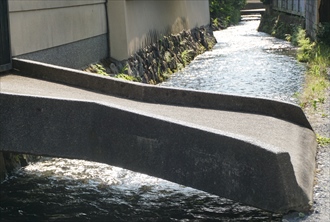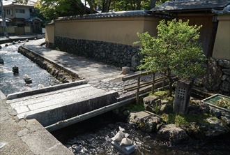 ![]() 上加茂民芸協団が設立された付近の家並 ![]() 付近を流れる明神川 ![]() 付近の旧社家町 ![]() 上加茂民芸協団の「井」印 |