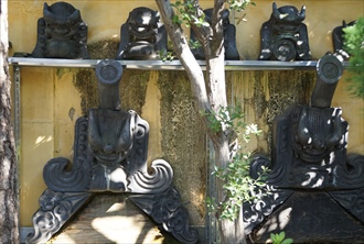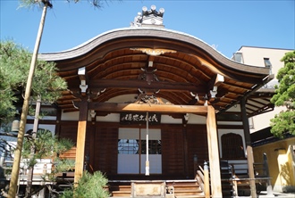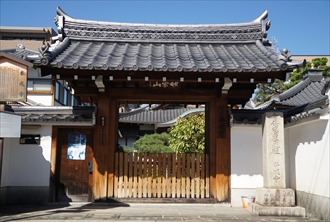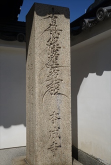 本成寺(ほんじょうじ)の「痰切り地蔵」が信仰を集める。山号は妙栄山(みょうえいざん)という。 法華宗本門流、本尊は十界曼荼羅。 ◆歴史年表 安土・桃山時代、1597年、本能寺を中興した日逕(にちきょう)により創建された。当初は、伏見区上板橋中之町にあった。 江戸時代、1636年、篤信者・中村隆運が法華経千部読誦の心願成就を機として、伏見町奉行・水野忠貞の協力を得て現在地に移した。 近代、1870年、地蔵菩薩像(痰切り地蔵)が大亀谷地蔵院より当寺に遷された。 ◆日逕 安土・桃山時代の僧・日逕(にちきょう、?-?)。詳細不明。1582年、本能寺の変後、本能寺を中興した。1597年、本成寺を創建した。 ◆水野忠貞 江戸時代前期の大名・水野忠貞(みずの-ただきよ、?-1670)。詳細不明。十郎左衛門。石見守・水野長勝の養子。18歳で大坂夏の陣の戦功により知行7500国取の大身の旗本になる。1666年、伏見奉行所の初代奉行に任じられる。1669年、辞任した。大和の忍海郡西辻村に陣屋を構えたという。 ◆地蔵菩薩 地蔵堂に安置されている木造地蔵菩薩像は、かつて薬師寺(伏見区三栖)下の大亀谷地蔵院に安置されていた。平安時代の公卿・文人・小野篁(おの-の -たかむら、802-853)作と伝えられ、「痰切り地蔵」として信仰を集めてきた。 江戸時代、1652年、隆閑寺学室に遷され、1870年、当寺に遷された。 ◆妙栄水 36世・日崇は本堂、庫裏の再建を果たした時、湧水があり「妙栄水」と名付けられた。現在も水は絶えない。 *年号は原則として西暦を、近代以前の月日は旧暦を使用しています。 *参考文献・資料 駒札 、ウェブサイト「コトバンク」 ![]() ![]() ![]() ![]() |