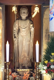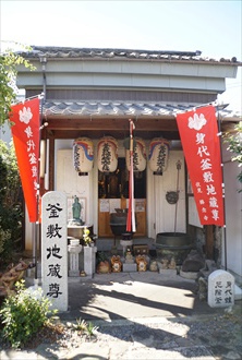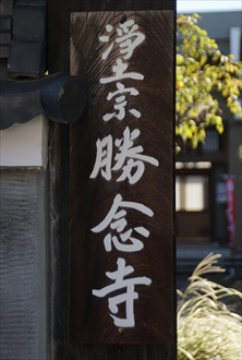 勝念寺(しょうねん-じ)は、安養山往生院と号する。「かましきさん」「かえる寺」「萩の寺」「えんまさんの寺」とも呼ばれている。 門前碑に「天明義民柴屋伊兵衛墓所」が立つ。ただ、境内に伊兵衛の墓はなく、その両親、祖先の墓がある。 浄土宗知恩院末、本尊は阿弥陀如来。 「通称寺の会」に、「かましきさん」として属する。 ◆歴史年表 安土・桃山時代、1587年、織田信長が帰依した聖誉貞安により開創された。第106代・正親町天皇の勅命による。信長・信忠父子の菩提を弔うために、豊臣秀吉の城下町・伏見丹波橋に開かれ、以来、布教の拠点になる。 1595年、現在の地蔵堂が建てられた。 江戸時代、1779年、火災により本堂、庫裏、創建当初の本尊・阿弥陀三尊坐像、過去帳、文物などが焼失する。山門、地蔵堂は難を逃れた。 1781年、本堂、庫裏が再建された 文政年間(1818-1830)、当寺の14世・一蓮社諦譽上人隆阿義禅の時、その師・専念寺17世・常恭敬院殿順阿隆圓より、身代釜敷地蔵尊・閻魔法王自作霊像のお札版木を贈られた。以来、身代釜敷地蔵尊の信仰が広まる。 近代、1881年、本尊が再建される。 1916年、当寺が伏見義民の一人・柴屋伊兵衛のゆかりの寺であることが発見され、門前に碑が立てられた。 現代、1976年、現在の本堂が再建された。 ◆貞安 室町時代後期-江戸時代前期の浄土宗の僧・貞安(ていあん、1539-1615)。男性。俗姓は北条、字は退魯、号は敬蓮社聖誉。聖誉貞安。相模国(神奈川県)の生まれ。父・後北条氏の一族・北条能登守満教、母・大江正時の娘。4歳で母、5歳で父と死別し、姨母に養育された。7歳で、小田原・大蓮寺・一蓮社堯誉上人還魯文宗の室に入り、11歳で剃髪した。14歳で師に従い下総・飯沼の弘経寺へ移る。同寺7世・見誉善悦の法を継ぐ。1572年、香衣綸旨拝載のために上京した。1573年、弘経寺の首座になる。1575年、能登七尾・西光寺にあり、上杉謙信の穴水城攻より逃れ、1576年、近江・妙金剛寺へ移る。織田信長の帰依を受けた。1579年、貞安の斡旋により、知恩院は信長より寺領100石の加増を受ける。貞安は、信長より安土田中に寺領を得た。能登七尾・西光寺に倣い、龍亀山西光寺を建立した。信長の命により、安土・浄厳院(じょうごん)での宗論に参加し、霊誉玉念らと法華経の日晄らを論破する。以後、信長の信任を得る。1582年、本能寺の変で信長没後、1583年、上洛して淨教寺に入る。1585年、第106代・正親町天皇の勅請で御所参内し、「選擇集」を講じ、僧伽梨大衣を贈られる。1586年、紫宸殿で陽光院親書の「阿弥陀経」を贈られる。1587年、正親町天皇の勅命により、信長、信忠父子の菩提を弔うために、大雲院、伏見・勝念寺を創建した。1594年、石川五右衛門の処刑前に引導を渡す。1595年、豊臣秀次の切腹に伴い、妻妾、幼児などは三条河原で打首になる。貞安は刑場の一隅に地蔵尊を運び、子女らに引導を授けた。1599年、大雲院移転により、「百瓶華会」を催す。1615年、二条城で徳川家康に謁した。大雲院・栖養院に隠棲する。77歳。(神奈川県) 勝念寺に貞安上人供養塔、位牌がある。 ◆安譽貞保 安土・桃山時代の浄土宗の僧・安譽貞保(?-?)。詳細不明。貞安の弟子。1601年、貞安は、西光寺の貞保に閻魔法王自作霊像を譲与した。後、貞保は勝念寺2世になる。 ◆柴屋伊兵衛 江戸時代中期の薪炭商・柴屋伊兵衛(?-1785)。詳細不明。1785年、伏見奉行の悪政に耐えかねた、京都伏見の町人・文殊(もんじゅ)九助らが幕府に直訴し捕らえられた。伊兵衛も六角獄舎に投獄され、拷問の末に獄死したという。 1916年、勝念寺が伊兵衛のゆかりの寺であることが発見され、門前碑が立てられた。伊兵衛は直訴当時、すでに高齢だったという。江戸に向った九助、九兵衛らに伏見の様子を知らせていたという。勝念寺には両親、先祖の墓がある。罪人になった本人は、他所に葬られた。戒名は「正譽義山淨因信士」。 ◆仏像・木像・位牌 ◈現在の本尊「阿弥陀如来」は、江戸時代中期、1780年に造像された。住職の師・小松谷義柳の念持仏だったという。蓮台は二つに割れ、光背に両側に迦稜頻伽、上方に化仏が彫られている。 ◈「閻魔法王自作霊像(十王像)」は、慈悲相の小像(1寸8分、5.5cm)になる。伝承として、摂津国・清澄寺の慈心房尊恵が、閻魔庁の法会に招かれた。その時、閻魔が松材に自刻したものという。織田信長が平氏織田を名乗った際に、始祖・平清盛の追善法要を行った。信長より、導師を務めた貞安に霊像は譲られた。安土・桃山時代、1579年、信長の命により、貞安は、西光寺(安土田中)を開く。1601年、貞安は、西光寺の弟子・安譽貞保(後の勝念寺2世)に霊像を譲る。また、貞安が勝念寺を貞保に譲った際に、霊像も西光寺より遷されたという。 ◈「多羅観音菩薩坐像(金銅天竺仏坐像)」は、「多羅仏母」、「救度仏母」とも呼ばれる。戦国時代に異国よりもたらされたという。「多羅」とは梵語で瞳を意味する。苦しむ衆生の多さに観音菩薩は、瞳より涙