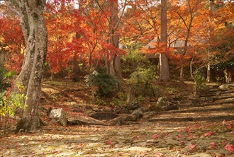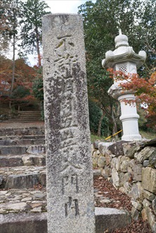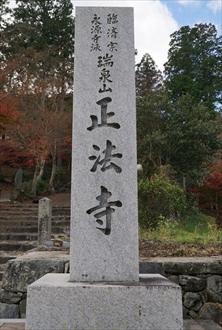 和束町(わづか)は周囲を山に囲まれ、山頂まで茶畑が広がる。町は「茶源郷」ともいわれている。 正法寺(しょうほうじ)は、仏法寺山を背にして開かれた。参道、境内に数多くの楓が植えられ紅葉の名所としても知られる。 臨済宗永源寺派、本尊は釈迦牟尼。 ◆歴史年表 創建、変遷の詳細は不明。 奈良時代、744年、若くして急逝した安積(あさか)親王は当地に葬られた。その冥福を祈るために、行基を開基として開創されたという。「正法禅寺」、「幡(はた)寺」、「幡法寺」、「仏法(ぶっぽう)寺」、「釋音寺」とも呼ばれた。仏法寺山にあり、寺領多く、創建当初は大伽藍が建ち並んでいたという。古くは真言宗だった。(『雍州府志』『京都府相楽郡誌』) 鎌倉時代-南北朝時代、元弘・建武年間(1331-1338)、寺院は度々、武将の陣営になる。寺領も奪われて荒廃した。 中世(鎌倉時代-室町時代)、衰退した。 江戸時代、1644年、正保年間(1644-1648)とも、仏光寺城主・田村氏(田村貞清)が、山麓にあった旧塔「指雲寮」の跡地に茅庵を営んだ。仏法寺山の古堂を現在地に移して仏堂とした。近江・永源寺の如雪文巌(にょせつ-もんがん)を請じて中興し、臨済宗永源寺派に改める。第108代・後水尾天皇の中宮・東福門院が帰依し、境内山林を寄付した。 1656年、寺号を正法寺と改める。 1665年、東福門院は四脚門を寄進した。 ◆行基 飛鳥時代-奈良時代の僧・行基(ぎょうき/ぎょうぎ、668/667-749)。和泉国(大阪府)の生まれ。百済径渡来人であり、父は高志才智、母は蜂田古爾比売。681年/682年、出家、官大寺で法相宗などを学ぶ。691年、高宮寺で具足戒を受ける。畿内に道場、寺を建立、溜池、溝・堀、架橋、困窮者の布施屋建設などの社会事業を行う。704年、生家を家原寺とし住した。717年、民衆煽動と僧尼令に反した寺外活動の咎で詔により弾圧を受ける。731年、弾圧を解かれる。732年、河内国狭山下池の築造に関わる。734年、東大寺大仏建立の詔が発布、勧進の任を務めた。736年、インド出身の僧・菩提僊那一行来日に際し太宰府で迎えた。738年、朝廷より行基大徳の称号が授与される。740年以降、東大寺大仏建立に協力する。741年、聖武天皇と恭仁京郊外の泉橋院で会見する。743年、東大寺大仏造営の勧進になる。745年、朝廷より日本初の大僧正位を授けられる。菅原寺(喜光寺)で亡くなる。地図の行基図を作成したという。東大寺「四聖」の一人。80歳。 ◆安積親王 奈良時代の皇族・安積親王(あさか-しんのう、728?-744)。第45代・聖武天皇の第2皇子。母は県犬養広刀自(あがたいぬかいのひろとじ)。同腹姉妹に井上内親王(白壁王の妃)、不破内親王(塩焼王の室)。718年、聖武天皇の正妻・光明子(こうみょうし、藤原不比等の娘)は阿倍内親王(後の第46代・孝謙天皇、第48代・称徳天皇)を産む。727年、基親王(もといおう)を産んだ。同年、基親王は皇太子に立てられた。だが、728年、没する。この頃、聖武天皇の唯一の男児・安積親王が生まれたという。安積親王は最も有力な皇位継承者にもかかわらず、太子に立てられなかった。736年、斎王の姉・井上内親王のために写経を行う。738年、光明皇后の娘・阿倍内親王が立太子になる。743年、安積親王は、恭仁京の藤原八束の邸で宴を開き、内舎人・大伴家持(おおとも-の-やかもち)も出席した。744年、安積親王は聖武天皇の難波行幸に従う。桜井頓宮(東大阪市)から恭仁京(加茂町)に引き返し、2日後に急逝した。死因は脚気のためとされる。17歳。 墓は、正法寺の西北、太鼓山(たいこやま、和束町)にある。 大伴家持は、安積親王を追悼し、『万葉集』(第3巻)に2篇(6首)の挽歌を残す。744年の薨後三七(さんしち)日に作られた長歌一首「かけまくも あやにかしこし 言はまくも ゆゆしきかも 吾王(おおきみ) 皇子(みこ)の命(みこと) 万代(よろづよ)に 食したまはまし」。返歌1首に「我(わ)が大君(おおきみ) 天(あめ)知らさむと 思はねば おほそに見ける 和束杣山(わづかそまやま)」。 この頃、聖武天皇、元正上皇(第44代)と光明皇后、橘諸兄、藤原仲麻呂の対立も起きる。安積親王の死について、藤原仲麻呂、その妻・袁比良(おひら)らによる毒殺説もある。729年、藤原氏が長屋王の変を起こし、光明子を皇后に立てることを強行したのも、基親王が夭逝し、安積親王が生まれたためともいわれる。 ◆如雪文巌 安土・桃山時代-江戸時代前期の臨済宗の僧・如雪文巌(にょせつ-もんがん、1601-1671)。俗姓は三好。阿波(徳島県)の生まれ。密教を学び灌頂を受ける。後、近江・永源寺の一糸文守(いっし-ぶんしゅ)に師事、法を嗣ぐ。1644年/正保年間(1644-1648)、和束・正法寺の中興開山になる。1646年、文守没後に永源寺の住持になった。71歳。 ◆東福門院 江戸時代前期の第108代・後水尾天皇の中宮・東福門院(1607-1678)。名は和子(かずこ/まさこ)。父は江戸幕府2代将軍・徳川秀忠、母は御台所達子(浅井長政3女、お江与の方、崇源院)。1620年、画策により14歳で入内したことにより、禁裏の財政を支えることになる。2皇子