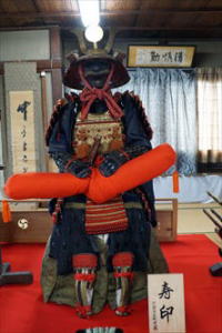![]() 岡部家の鎧甲冑、中央は大将、左右は御使武者 ![]() 岡部家 ![]() 岡部家、右端は騎乗し甲冑姿の大将の弦召(つるそめ)、展示史料より ![]() 弓箭閣、寿印の鎧甲冑、赤く太い腰紐 ![]() 弓箭閣 ![]() 弓箭閣、兜鉢、面頬、喉輪 ![]() 弓箭閣 ![]() 弓矢町の町名表示 ![]() 【参照】物吉村、室町時代、「洛中洛外図屏風(上杉本)」、京都アスニー陶板壁画より |