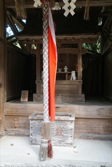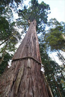 ご神木の大杉は、2001年に町指定文化財)天然記念物)に指定された。幹周5m、樹高30m。
