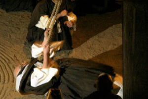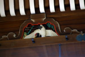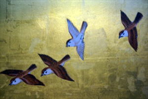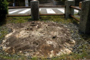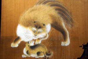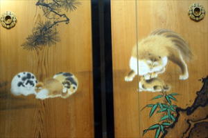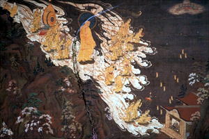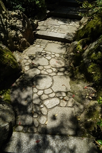 ![]() ![]() ①「鶯張り廊下」。床板には下から金属製の目かすがいの先端が打ち込まれ、かすがいと根太とは和釘2本で留められている。 ![]() ②「忘れ傘」(御影堂の南東庇の梁の間) ![]() ③「三方正面真向(まむき)の猫」 ![]() ![]() ④「抜け雀」(大方丈菊の間) ![]() 解説パネルより ![]() ⑤「白木の棺」(三門)。解説パネルより ![]() ⑥「大杓子」(大方丈入口の梁) ![]() ⑦瓜生石(黒門の西、路上中央)。珪灰石。 ![]() 五輪塔、阿弥陀堂の北にあり、知恩院七不思議の一つともいう。 ![]()