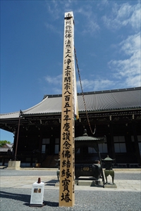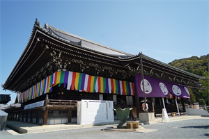 東山三十六峰の一つ華頂山(かちょう-ざん)の麓にある知恩院(ちおん-いん)は、法然が住み、念仏を広めた「吉水の御房」の地になる。かつて徳川家の菩提寺だった。正式には、華頂山大谷寺(おおたにじ/おおたにでら)知恩教院という。浄土宗七大本山の一つ。かつて、浄土宗四本山(ほかに知恩寺、清浄華院、金戒光明寺)の一つ。 浄土宗7000カ寺の総本山、念仏宣布の根本道場になる。本尊は本堂に法然上人像を安置する。 法然上人(圓光大師)二十五霊場第25番。 本山、勢至堂で御朱印(3種類)が授けられる。 「ミシュラン・グリーンガイド・ジャポン1つ星観光地」(改訂第4版)に選ばれている。「京都市のバリアフリー・車椅子の方にもおすすめできる神社・寺院スポット一覧 (10件)」(介護アンテナ)の一つに選ばれている。 ◆歴史年表 平安時代末期、1175年、法然(1133-1212)は、天台宗の比叡山西塔黒谷の住坊を下り、西山、広谷(後の粟生光明寺)の念仏の聖・遊蓮房円照に寄る。(『法然上人絵伝』)。法然は吉水の草庵に移り、専修念仏の道場になる。境内には、中ノ房(大殿付近、二ッ岩禅房)、東ノ房(鐘楼堂付近/小方丈の地、松ノ下禅房、上の坊)、西ノ旧房(三門西南付近、清水禅房、下の坊)があり、法然はおもに中ノ房に30年近く住した。浄土宗が開宗される。(『法然上人絵伝』) 鎌倉時代、1204年、法然は、門弟190余人の署名とともに「七箇条制誡」をしたため、比叡山衆徒の浄土宗への批判をかわす。 1205年、興福寺の貞慶らは「興福寺奏状」を朝廷に提出し、後鳥羽院(第82代)に念仏停止を求める。 1207年、法然は「承元の法難」により、四国・土佐国へ流罪になる。 1211年、旧11月、法然はようやく帰京を赦される。だが、草庵は荒れ果て、青蓮院の慈円僧正により大谷の禅房(勢至堂付近の南禅院)に移る。(『法然上人絵伝』) 1212年、旧1月、法然が亡くなり、門弟・勢観房源智は、法然の遺骸を禅房(現在の勢至堂付近)の東崖に廟堂(現在の御廟付近)を建て葬る。以後、廟堂は高弟・信空(1146-1228)により管理される。命日には知恩講(追善法会)を催した。廟堂は多くの参詣者を集め、貴賤を問わず念仏者の聖地になる。 1227年、旧6月、「嘉禄の法難」では、比叡山の僧徒が専修念仏の停止を訴え、廟堂の破壊が行われる。法然の遺骸を掘り起こし、鴨川に流そうとした。住房なども破壊された。京都守護・北条時氏、内藤西仏らが暴挙を制した。弟子・宇都宮蓮生、千葉法阿らは再来襲をおそれ、秘かに遺骸を粟生(あおう)の地(光明寺)に遷し、荼毘に付されたともいう。(『法然上人絵伝』『百錬(練)抄』)。ついで湛空(が小倉山に雁塔を立てたという。 1234年、法然の弟子・源智は廟堂を修理し、仏殿、御影堂、総門を建立したともいう。「知恩院大谷寺」と名付け法然を開山1世とした。法然の遺骨の一部が移安される。この時、第87代・四条天皇により、総門に「華頂山」、御影堂に「知恩教院」、仏殿に「大谷寺」の勅額を贈られたともいう。(『法然上人絵伝』翼賛)。以後、勅願所になる。 1315年、法然像の版画が知恩院に置かれる。 室町時代、1431年、旧11月、焼失した。(『師郷記』) 1432年、空禅は人別一文あて48万人の勧進を始めた。(「知恩院文書」)。後に将軍・足利義教も勧進に尽力する。 1460年、青蓮院は知恩院敷地山林所領を安堵する。 1468年/1467年、応仁・文明の乱(1467-1477)で西軍の焼払いにより焼失している。(『碧山日録』『後法興院記』)。22世・周誉珠琳は影像を一時、近江伊香立(いかだつ)の新知恩院に避難させる。 1478年頃、住持・珠琳(じゅりん)が朝野の奉加を得て再興した。 1482年、旧地に仏殿、影堂が再興された。新知恩院より什宝が移される。 1488年、青蓮院の尊応は知恩院敷地山林所領、法楽寺無量寿院惣別寮敷地を安堵する。還付された。 1491年、管領・細川政元は寺領を安堵する。 1517年、旧8月、焼失した。影像、勅伝は焼失を免れる。(『宣胤卿記』『後法成寺尚通公記』)。旧10月、梵鐘が再鋳された。(鐘銘)。東福寺の萬寿寺より伽藍を移して阿弥陀堂とする。 1523年、百万遍知恩寺25世・伝誉慶秀らによる別院の動き(本家争い)が起きる。青蓮院の尊鎮法親王の援助により、知恩院に一宗本寺の地位を与えた。浄土宗総本寺になる。 1524年、御忌大会(大永の御忌鳳詔)が始まる。詔勅により、浄土宗総本山になる。 1530年、27世・徳誉光然の時、大谷禅房の旧地に御影堂(現在の勢至堂)が建立された。第105代・後奈良天皇は、「知恩院教院」「大谷寺」の勅額を贈る。 1553年、称念は毎月一夜の不断念仏を始めた。 1560年、足利義輝は一宗本寺の座次公帖を下す。 安土・桃山時代、1573年、15代将軍・足利義昭が織田信長により追放された際に、義昭の二条城に対して信長は、知恩院に陣を敷く。信長は恩謝として白銀、米、寺領を寄せる。(『兼見卿記』)。第106代・正親町天皇により、知恩院は浄土宗本寺と認められる。香衣着用の勅許は、知恩院よりの執奏によるとされた。(「正親町天皇綸旨」)。知恩寺との