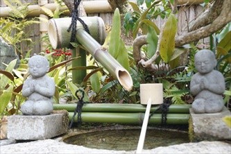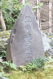 ◆砂踏み 庭に、西国三十三観音札所の本尊石仏を祀る。各札所の砂の上に足をのせてお参りすると、三十三札所を巡った功徳を得られる。