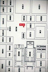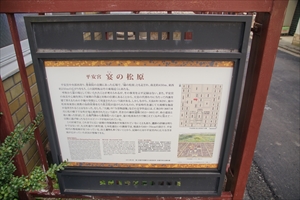 ![]() 「宴の松原」の石標 ![]() 京都市埋蔵文化財研究所・京都市考古資料館の説明板 ![]() 宴の松原(赤い点の部分)、その南に豊楽院、説明板より ![]() 説明板より ![]() 【参照】平安時代宴の松原復元図(京都市平安京創生館)、案内パネルより |