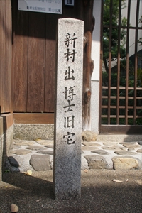 北区の紫明通南に「木戸孝允公邸遺構 (きど-たかよし-こうてい-いこう) 新村出博士旧宅(しんむら-いずる-はかせ-きゅうたく)」の石標が立つ。 この地には、近現代の言語学者・国語学者・新村出の旧宅があった。母屋は近代の政治家・木戸孝允の旧邸の一部を移築している。 新村の蔵書は新村出記念財団により、「重山文庫(ちょうざん-ぶんこ)」として管理・公開されている。 ◆歴史年表 近代、1868年、政治家・木戸孝允は、鴨川西畔の近衛家下屋敷(中京区末丸町)を買い取り京都別邸にする。 1920年4月より、言語学者・国語学者・新村出の一家は、一時、旧木戸孝允邸に住んでいる。 1923年、出は木戸家より旧木戸邸の一部だった平屋の母屋を譲り受けた。5月、現在地(上京区[現・北区]小山中溝町19番地)への移築が始まる。 12月、出一家は定住する。 現代、1963年、8月、出はこの地で亡くなった。 1981年、5月、現在地に現代の言語学・日本語学研究を支援することを目的とし、公益財団法人「新村出記念財団」が設立された。 1988年、9月、石標が立てられた。 2013年より、財団は一般財団法人になる。 ◆木戸孝允 江戸時代後期-近代の政治家・木戸孝允(きど-たかよし/こういん、1833-1877)。本姓は和田、通称は桂小五郎(かつら-こごろう)、貫治、準一郎、号は松菊(しょうぎく)、木圭、竿鈴(干令)、変名は新堀松輔、あだ名は逃げの小五郎など。萩(山口県)の生まれ。長州萩藩医・和田昌景の次男。1840年、桂九郎兵衛(孝古)の養子になる。1849年、吉田松陰の門下になった。1852年、江戸に出て剣術・斎藤弥九郎の練兵館(神道無念流)に入り塾頭になる。後、江川太郎左衛門から洋式砲術を学ぶ。蘭学、造船術も学ぶ。水戸、越前、薩摩などの尊攘派と交わった。1860年、井伊大老の暗殺直後に、長州藩の軍艦・丙辰丸船上で水戸藩士・西丸帯刀らと「丙辰丸盟約」を結び、尊王攘夷に加わる。1862年、藩命により京都・長州藩邸へ入り情報収集を行う。1863年、8月18日の政変後に京都に潜伏した。1864年、6月、新撰組による池田屋襲撃では難を逃れた。7月、蛤御門(禁門の変)を防ぐことができず、但馬・出石に潜伏する。1865年、一旦、長州に帰藩した。1866年、長州藩代表として、京都・薩摩藩邸で坂本龍馬の立会により薩摩藩・西郷隆盛らと「薩長同盟」を結ぶ。1867年、長州藩を訪ねた大久保利通、西郷らと討幕挙兵を協議した。 1868年、新政府の太政官に出仕し、参与になる。由利公正、福岡孝弟らと「五箇条の御誓文」の起草に関与した。1869年、版籍奉還建白の実現に関わる。1870年、新政府の参議になる。1871年、西郷とともに廃藩置県の断行に関与した。開明急進派を主導し、漸進派の大久保と対立する。米欧遣外使節団(特命全権大使・岩倉具視)の全権副使として大久保、伊藤博文らと米欧視察する。木戸は諸国の憲法・法制を担当した。1873年、帰国後、憲法制定を建言した。西郷、板垣退助らの征韓論に対し、内治派(大久保、岩倉、木戸)らは、国力が充実していないとして反対し、西郷を下野させた。木戸は大久保の独裁政権成立後は大久保を批判した。1874年、富国強兵政策の台湾出兵(征台の役)の、征台論に反対し参議を辞する。1875年、一時、大久保らの政府主流派に妥協し政府に復帰する。第1回地方官会議(大阪会議)の議長になる。再び、大久保主導への不満から、1876年、辞職した。1877年、西南戦争の最中に京都で病没する。44歳。 「維新三功臣(ほかに西郷隆盛、大久保利通)」の一人。勝海舟、坂本龍馬、横井小楠ら開明派とも親交があった。 墓は霊山護国神社内墓地(東山区)にある。 ◆新村出 近現代の言語学者・国語学者・新村出(しんむら-いずる/いづる、1876-1967)。号は重山(ちょうざん)。山口の生まれ。山口県令・関口隆吉(せきぐち-たかよし)の次男、母は静子。1881年、父が元老院議官になり、家族で東京に移る。1887年、静岡県尋常中学校に入学した。1889年、父が列車衝突事故により急逝し、新村家の養子になる。養父・新村猛雄は徳川慶喜の家扶(かふ)だった。1892年、 第一高等中学校に入学した。1896年、 東京帝国大学文科大学博言学科に入学する。教授・上田万年(かずとし、1867-1937)、フロレンツに師事した。言語学を学ぶ。1898年、上田らと言語学会を創立した。1899年、東京帝国大学文科大学を卒業し、東京帝国大学大大学院に入学した。1900年、『言語学雑誌』(-1902)を創刊した。東京帝大学文科大学助手になる。1902年、東京高等師範学校教授になる。1904年、東京帝国大学大大学院国語学専攻を退学する。東京帝国大学助教授を兼任した。1907年、京都帝国大学文科大学助教授になる。言語学研究のため、ドイツ・イギリス・フランスに留学する。1909年、帰国し、京都帝国文科大学教授に就任し言語学科を創設した。以後、定年まで言語学講座を担当した。1910年、『藝文』(-1931)を発刊した。文学博士の称号を得る。1911年、京都帝国大学付属図書館館長になる。1916年、京大言語学研究会を組織した。1919年、京都帝国大