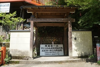 山中越(京都府道・滋賀県道30号下鴨大津線)沿いに不動院(ふどういん)はある。地蔵谷不動院、北白川不動院とも呼ばれている。山号は北白川山という。 東山三十六峰の北端に位置し、古くより京都御所の鬼門除け、山中越を往来する旅人の安全を守護してきた。境内にラジウム泉の不動温泉を併設している。 真言宗醍醐寺派。本尊は不動尊。 ◆歴史年表 江戸時代、1792年、沙門宗鏡法師が、旅人の安全を祈願し不動像を刻んだことが始まりという。 現代、1954年、現在地に建て替えられた。不動温泉(天然ラジウム泉)が開かれる。 ◆不動尊 江戸時代、参勤交代の峠越えにより、多くの崖崩れが起こり、数多くの犠牲者出た。1792年、沙門宗鏡法師は、旅人の安全を祈願し不動像を刻んだ。このため、不動尊は、「身代わり不動」と呼ばれている。 ◆不動温泉 1954年、境内工事に伴い、花崗岩より湧出する鉱泉が発見された。当時の住職が専門家に依頼して水質調査し、ラジウム泉と判明する。その後、水で傷を洗い清めると治りが早いことから「おたすけ水」と呼ばれるようになる。 北白川一帯には花崗岩(含褐簾石黒雲母花崗岩)が分布している。酸化トリウムを1.0∼2.0%含んでいる。これら花崗岩の風化したものが白川砂(石英、長石)になる。 ラジウム温泉とは、岩盤に水に溶け込んだラジウムが壊変し、気体してラドンになる。壊変とは、原子核が不安定な状態から、放射線を出し別の原子核・安定な状態の原子核に変わっていく現象をいう。ラドンは、人体の肺、血液、細胞へ運ばれ、壊変時にアルファ線を出す。この時、周囲の細胞にイオン化作用をもたらし、治療効果が生まれるとされる。泉質は、単純放射能冷鉱泉であり、含有量28.83マッヘ(M.E.)になる。 境内に併設している不動温泉は、ラジウム泉であり、源泉を持ち山の岩肌から湧いている。天然ラジウム鉱泉湧出元関西第一位といわれ、軟水で飲用もできる。 ![]() 効能は、リューマチ、胃腸の疾患、関節痛、脊椎痛、更年期障害、創傷、神経痛、自律神経失調症、ノイローゼ、喘息、慢性気管支炎、皮膚疾患、がん疾、不妊症、腎臓病、肝臓病、心臓疾患、動脈硬化症、肩こり、痔、うちみ、くじき、しもやけ、歯周炎、飲用と併用して糖尿病、胃腸カタル、痛風などになる。 ◆年間行事 初祈祷(1月1日)、不動明王護摩供(1月第2日曜日・28日)、星祭り・開運厄除護摩供(2月14日)、不動明王護摩供(2月28日)、彼岸供養会(3月21日)、不動明王護摩供(3月第2日曜日・28日)、不動明王護摩供(4月第2日曜日・28日)、春季柴燈大護摩供大祭(御詠歌、御法楽、柴燈大護摩供・火生三味火渡り)(5月8日)、不動明王護摩供(5月28日)、不動明王護摩供(6月第2日曜日・28日)、大峯山入峰参拝(7月3日・4日)、不動明王護摩供(7月第2日曜日・28日)、施餓鬼供養会(8月21日)、不動明王護摩供(8月第2日曜日・28日)、彼岸供養会(9月25日)、不動明王護摩供(9月第2日曜日・28日)、不動明王護摩供(10月第2日曜日・28日)、秋季柴燈大護摩供大祭(御詠歌、御法楽、柴燈大護摩供・火生三味火渡り)(11月13日)、不動明王護摩供(11月28日)、不動明王護摩供(12月第2日曜日・28日)。 *年間行事(拝観)などは、中止・日時・内容変更の場合があります。 *年号は原則として西暦を、近代以前の月日は旧暦を使用しています。 *参考文献・資料 当院、当温泉ウェブサイト、『琵琶湖・淀川 里の川をめぐる 白川』 ![]() ![]() ![]() ![]() ![]() |
