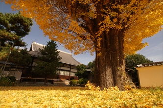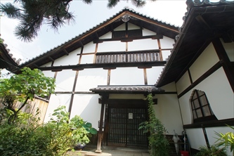 浄福寺通に面して慧光寺(えこう-じ)がある。山号は智照山という。 日蓮宗本圀寺派、本尊は十界曼荼羅。 ◆歴史年表 室町時代、天文年間(1532-1555)、足利義輝の家臣・野本輝久の亡き後、その正室・伊佐が出家し妙法尼と名乗り、菩提を弔うために私邸を草庵とした。寺号は輝久の法号による。開山は日玄による。当初は、須磨町(上京区元伊佐町)にあった。(『山州名跡志』『坊目誌』) その後(年代不詳)、新在家町(上京区)に移る。 安土・桃山時代、天正年間(1573-1592)、現在地(笹屋町)に移った。 ◆野本 輝久 室町時代後期の武将・野本 輝久(のもと-てるひさ、?-1565)。詳細不明。男性。足利義輝の家臣。式部少輔。三好長慶、松永久秀らの義輝暗殺計画に同意しなかったため、1565年、即刻、長慶の家臣に殺害された。 墓は妙恵会総墓所(下京区)にある。 ◆野本 伊佐 室町時代後期の野本 伊佐(のもと-いさ、?-?)。詳細不明。女性。父・久我晴通(こが-はるみち)。足利義輝の家臣・野本輝久の正室。天文年間(1532-1555)、夫亡き後、出家し妙法尼と名乗る。夫の菩提を弔うために私邸を草庵とした。 邸宅は人々に「伊佐殿」と呼ばれた。◆元伊佐町 伊佐殿は町名の由来になり、伊佐町と称される。上京区に元伊佐町(もといさ-ちょう)が残る。 ◆樹木 ◈イチョウの大木がある。 ◈ヤマザクラ(上京区民の誇りの木)がある。 高さ6.50m、枝張10.7m、幹周2.05m。 *年号は原則として西暦を、近代以前の月日は旧暦を使用しています。 *参考文献・資料 『京都大事典』、『京都市の地名』、『京都歴史案内』 、ウェブサイト「コトバンク」 ![]() ![]() ![]() ![]() ![]() |