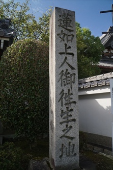 西野の西宗寺(さいしゅう-じ)の門脇に、「蓮如上人御往生之地」の石標が立つ。蓮如ゆかりの寺であり、海老名(えびな)家の氏寺になる。山号は放鶯山(ほうおう-ざん)という。 浄土真宗本願寺派、本尊は阿弥陀如来。 ◆歴史年表 室町時代、1481年、旧10月18日、蓮如の弟子・浄乗は、山科本願寺寺内に西宗寺を建立した。本願寺の防御的な意味もあったという。蓮如より絵像「方便法身尊形」を下され、山科本願寺諸堂とともに建立された。この時、本願寺南殿を与えられという。以後、寺は海老名家の氏寺になる。(『西宗寺縁起』)。当初は興正寺の末寺だったという。 1498年、病になった蓮如は、大坂より山科本願寺へ移ることを願う。浄乗は子・祐信を大坂に遣わした。この時、蓮如は御尊影「山科蓮如上人御形見の御影」を祐信に与えたという。(『西宗寺縁起』) 1499年、旧3月25日、蓮如はこの地で没したという。(『西宗寺縁起』『大谷本願寺通紀』)。荼毘所跡に廟が建てられる。 1532年、山科本願寺退去後、海老名家は西宗寺の代々の住職をつとめ、本願寺跡地・蓮如廟所の管理を行う。(「西宗寺文書」) 1541年、西宗寺の浄乗の子・祐信、信教という僧が斎事を行っていたと記されている。(『天文日記』) 近世(安土・桃山時代-江戸時代)以降、光称寺(光照寺)とともに、西宗寺は蓮如墓を管理した。 江戸時代、1820年、光照寺が「蓮如上人御隠居旧地」の石碑を立てたため、蓮如往生地をめぐり、西宗寺と光照寺の間で訴訟がくり広げられた。(「西宗寺文書」) ◆浄乗 室町時代後期の僧・浄乗(?-?)。詳細不明。浄垂、海老名五郎左衛門信忠。子に祐信。足利尊氏の幕下・海老名遠江の孫という。山科野村郷西中路の名主、地侍である信忠は、自治組織「山科七郷惣郷」の寄合いに加わる。所領地の一部(4-5丁)、屋敷を蓮如に寄進した。蓮如は山科本願寺を建立する。信忠は、蓮如の弟子になり、浄乗と称した。1481年、浄乗は西宗寺を建立した。 ◆蓮如 室町時代前期-後期の真宗の僧・蓮如(れんにょ、1415-1499)。男性。法名は兼寿(けんじゅ)、号は信証院、諡号は慧灯(えとう)大師。諱(いみな)は兼寿。京都東山大谷の生まれ。父・第7代・存如、母・祖母の侍女の長男。1420年、6歳で母が本願寺を去る。継母・如円の下で育つ。1431年、17歳で青蓮院で得度、中納言・広橋兼郷の猶子となる。比叡山、興福寺で修行したという。1442年、如了尼と結婚する。1449年、東国布教に出る。1457年、父の死により本願寺8世となる。1465年、比叡山衆徒により本願寺は破却された。近江に逃れる。(寛正の法難)。1468年、延暦寺は堅田を攻撃する。(堅田大責)。1468年/1469年、大津近松に移り、祖像を遷す。1469年、東国に修行に出る。1471年、越前・吉崎に襲撃を避けて道場、吉崎御坊を開く。1473年『正信偈・和讃』開版。1474年、文明の加賀一向一揆が起こる。1475年、一向一揆に敗走し、河内出口に向かう。1478年、山科に移る。1483年、本願寺を再興し、山科での布教を続けた。1488年、長亨の加賀一揆が起こる。1489年、山科本願寺南殿に隠居した。1496年、大坂石山に坊舎を建て妻子と隠棲した。1499年、山科本願寺に戻り亡くなる。85歳。 蓮如は1461年以後、現世利益ではなく、救われて仏となること、師による恩ではなく教説による仏恩を説き、布教に御文(おふみ)(御文章 [ごぶ んしょう] )を用いた。「南無阿弥陀仏」などと書かれた掛け軸の御名号(おみょうごう)、門徒の組織である講、親鸞の教えの木版印刷などを通じた布教により教団の急拡大を行った。 ◆本尊・書像 本堂の本尊「阿弥陀如来立像」は、室町時代後期、1479年に、本願寺8世・蓮如より浄乗に下付されたという。(「本尊裏書」) 蓮如直筆の「宗祖見眞大師の書像」、蓮如自作の木像が安置されている。 ◆放鶯山 西宗寺の山号である放鶯山(ほうおう-ざん)についての伝承がある。 蓮如が病になりこの地、山科に移った。鶯(うぐいす)でさえ「(ホーホケキョ [法を聞け] )」と囀(さえず)るとして、飼っていた籠の鶯を空に放ったという。 浄乗の子・祐信は、蓮如の看病にあたった。蓮如は自らの影像「蓮如上人形見の御影」を祐信に与えたという。室町時代後期、1532年、山科本願寺の焼討に際して、祐信は御影を地に埋めて隠した。夜半に掘り出し、宇治田原に逃れる。その後、本願寺10世・証如(1516-1554)の後を追い、大坂に無事届けたという。 ◆海老名氏 東国武士・海老名氏は、相模国高座郡海老名に本拠があり、平安時代、11世紀(1001-1100)、源太郎季兼より海老名姓を名乗った。所領地は、相模国海老名、播磨国矢野荘にあった。後に門流は2つに分かれている。 南北朝時代、海老名氏は足利尊氏の配下になる。忠景、季直などの名が残る。(『太平記』)。室町時代、足利義満時代の近習、その後、走習になる。後、山科に所領を得て移った。近代、明治期(1868-1912)まで海老名家は存続したともいう。(「海老名系図」) 室町時代後期、1478年に蓮如が山科に本願寺、寺内町を建立した時、名主・