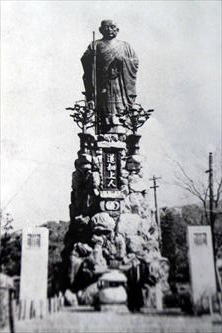 山科区西野の住宅街の一角に、「蓮如上人銅像跡(れんにょ-しょうにん-どうぞう-あと)」がある。 かつてこの地には、蓮如の巨大な立像が立てられていた。いまは一帯に台座、石碑跡、庭跡だけが残る。 ◆歴史年表 近代、1934年、9月、蓮如上人銅像は立てられた。 1944年、太平洋戦争中に「戦時金属供出」により立像、碑文が撤去され、台座だけが残された。 ◆蓮如 室町時代前期-後期の浄土真宗の僧・蓮如(れんにょ、1415-1499)。男性。幼名は布袋(丸)、幸亭、法名は兼寿(けんじゅ)、号は信証院、諡号は慧灯(えとう)大師。京都東山大谷の生まれ。父・第7世・存如(ぞんにょ)、母・祖母(父とも)の侍女の長男。1420年、6歳の時、母が本願寺を去る。生国の備後鞆ノ浦/豊後望都に帰ったという。継母・如円の下で育つ。青蓮院尊応に学ぶ。1431年、17歳で青蓮院で得度し、中納言・広橋兼郷の猶子になる。比叡山、興福寺大乗院前門跡・経覚に学ぶ。1442年、如了尼と結婚する。1447年、関東に下り、親鸞の遺跡を巡拝した。1449年、父と北陸関東・東北布教に出る。1457年、父の死により本願寺第8世宗主になる。1465年、比叡山衆徒により大谷の御影堂は破却された。近江に逃れる。(寛正の法難)。1468年、延暦寺は堅田を攻撃する。(堅田大責)。1468年/1469年、大津近松に移り、祖像を遷した。1469年、東国に修行に行く。1471年、越前・吉崎に襲撃を避けて道場、吉崎御坊を開く。1473年、『正信偈(しょうしんげ)・和讃』を開版した。1474年、文明の加賀一向一揆が起こり、宗徒暴発を諫めた。1475年、一向一揆に敗走し、河内出口に向かう。1478年、山科に移る。1483年、山科本願寺を建立し、本願寺を再興し布教を続けた。1488年、長亨の加賀一揆が起こる。1489年、退隠し、5男・実如(じつにょ)に本願寺住持職を譲り、山科本願寺南殿に隠居した。1496年、摂津大坂石山に坊舎石山別院(石山本願寺、大坂御坊)を建て妻子と隠棲した。1499年、山科本願寺に戻り亡くなる。85歳。 浄土真宗中興の祖。蓮如は1461年以後、現世利益ではなく、救われて仏になること、師による恩ではなく教説による仏恩を説き、布教に平易な教示の文章『御文(おふみ、東本願寺)/御文章(ごぶんしょう、西本願寺)』を用いた。「南無阿弥陀仏」などと書かれた掛け軸の「御名号(おみょうごう)」、門徒の組織である講、親鸞の教えの木版印刷などを通じた布教により教団の急拡大を行った。近代、1882年に慧燈大師と勅諡された。 墓は山科本願寺寺内町跡(山科区)にある。 ◆黒岩 淡哉 近現代の彫刻家・黒岩 淡哉(くろいわ-たんさい、1872-1963)。男性。高木倉吉。後に黒岩家に養子として入る。二松学舎卒業後、1889年、東京美術学校入学、彫刻(木彫)を学ぶ。1894年、卒業。1898年、東京美術学校の彫刻科助手兼教務掛に就く。1900年、パリ万博に「子守」を出品し金牌受賞。1914年、東京美術学校より大阪府立職工学校に出向した。1930年、勲六等瑞宝章受賞。1931年、同校を退職した。1936年、大阪・守口市に移る。 作品に、「普賢菩薩像」(1930年、四天王寺)、「楠木正行像」(1937年、飯盛山)、「芭蕉像」(1957年)、「高野山普賢院)、「菅原道真像」(1958年、福岡・水田天満宮)などがある。91歳。 ◆蓮如上人銅像 近代、1934年9月に青銅製の蓮如上人銅像は立てられた。行脚姿の姿の蓮如立像だった。 東西の御坊融和の象徴として立てられたものという。場所は、東御坊(東本願寺山科別院)、西御坊(西本願寺山科別院)、蓮如上人廟所の3点のほぼ中間点になる。 建立者は、江戸時代の由比正雪の子孫・卯三郎という。彫刻家・黒岩淡哉の作、仏師・彫刻家・高村光雲(1852-1934)が顧問になった。1944年、太平洋戦争中に、「金属供出」により石垣の台座を残して撤去された。立像は、台座部分も含めて高さ10mだったという。 *年号は原則として西暦を、近代以前の月日は旧暦を使用しています。 *参考文献・資料 碑文、「山科本願寺と蓮如コース参加者用資料」 、ウェブサイト「コトバンク」 ![]() ![]() ![]() ![]() ![]() ![]() ![]() ![]() ![]() |