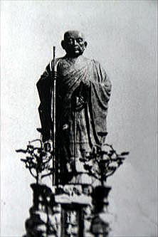 ![]() ![]() 石の台座部分 ![]() 碑文 ![]() 「顧問 高村光雲、原型 黒岩淡哉、鋳造 伊藤乙丸」と刻まれている。 ![]() 石碑、碑文板も残されていない。 ![]() 庭園跡の石橋 ![]() 【参照】蓮如上人銅像、地域の方提供 ![]() 【参照】蓮如上人銅像 |