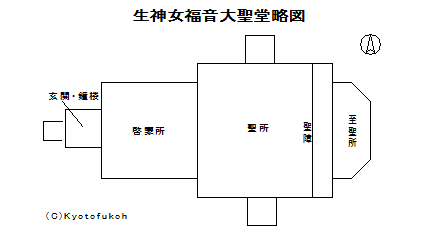 1901年/1900年、京都府技師・松室重光の設計監督した現在の聖堂、生神女福音(しょうしんじょふくいん、受胎告知)聖堂の建設が始まる。