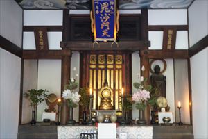 鞍馬街道に面して専称寺(せんしょう-じ)が建つ。毘沙門堂は「毘沙門」とも呼ばれている。かつて鞍馬山は女人禁制であり、女性は、「鞍馬山一ノ門鳥居」と呼ばれた当寺までの参詣が許されていた。いまも女性参詣が多い。 単立浄土宗、本尊は阿弥陀如来。 ◆歴史年表 室町時代、1548年、称念上人が創建した。当初は、浄土宗一心院末だった。 近代、1873年、毘沙門堂が一時廃絶したという。(『京都府地誌』) 現代、2012年、毘沙門堂に天井画「阿吽双龍」が奉納される。 ◆称念 室町時代後期の浄土宗の僧・称念(しょうねん、1513-1554)。俗姓は藤田、字は吟応(翁)、号は三蓮社縁誉。江戸/武蔵国(埼玉県・神奈川県)の生まれ。8歳で江戸・増上寺の親誉により剃髪、宗戒両脈を受けた。下総国(茨城県)飯沼・弘経寺の鎮誉に師事し浄土教学を学ぶ。江戸に天智庵を開創した。京都・黒谷に移り、1548年、青蓮院尊鎮親王の帰依により知恩院祖廟の南隣に草庵を結び、六時念仏を行う。信徒により堂舎が建てられ、念仏三昧の道場、本寺・一心院になる。掟「念仏道場七箇条」「別時念仏十一箇条」などを定めた。一心院で専修念仏に努め、亡くなる。42歳。 浄土宗捨世派(一心院流)の祖。47ほどの寺院を創立したという。京都では一心院ほかに、市原の専称庵、上嵯峨の称念寺、下嵯峨の正定院、桂の極楽寺などがある。 ◆澄月 江戸時代前期-後期の歌僧・澄月(ちょうげつ、1714-1798)。俗姓は西山、号は酔夢軒、垂雲軒。備中(岡山県)生まれ。幼くして出家し、13歳で比叡山延暦寺で天台宗を学ぶ。後に浄土門に入る。諸国行脚の後、岡崎に隠棲した。二条派歌人・武者小路実岳(むしゃのこうじ-さねおか)に和歌を学ぶ。堂上風(どうしょうふう)の歌を詠む。家集『垂雲和歌集』、著『和歌為隣抄』。85歳。 寛政期(1789~1801)の京都地下(じげ)歌人四天王(平安和歌四天王)(ほかに小沢蘆庵[]、伴蒿蹊[ばん-こうけい]、僧・慈延)の一人。 ◆斎灯サトル 現代の画家・斎灯サトル(さいとう-さとる、1977-) 。静岡在住。10代より作家・小林正観の著書の挿し絵を描く。江島神社・奉安殿など全国の社寺の天井画を描いた。パフォーマンス、講演活動も行う。 ◆仏像 ◈ 本堂に本尊の「阿弥陀如来像」が安置されている。 ◈ 脇壇に「阿弥陀如来立像」が安置されている。鎌倉時代作であり、「つまぐりの阿弥陀」とも呼ばれた。 ◈ 毘沙門堂に、「福富(ふくとみ)毘沙門天」が安置されている。かつて、「福惜み(ふくおしみ)毘沙門天」と呼ばれた。毘沙門天は、鞍馬寺に参詣し、授かった人の福を奪い取るとされた。このため参詣者は、堂前を通ることを避け東の道に抜けていた。このため、後に「福富毘沙門堂」「福富毘沙門天」に改めたという。 ◈ 毘沙門堂に、「観世音菩薩」、「魔王大僧正」が安置されている。 ◆天井画 毘沙門堂に天井画「阿吽双龍」(6帖)が描かれている。現代の画家・斎灯サトルの筆により、2012年に完成した。 ◆墓 江戸時代中期の歌僧・澄月の墓がある。 *年号は原則として西暦を、近代以前の月日は旧暦を使用しています。 *参考文献・資料 『昭和京都名所図会 3 洛北』、『京都市の地名』、ウェブサイト「アトリエ サトルーチ」 ![]() ![]() ![]() ![]() |