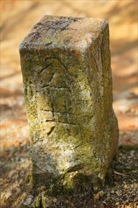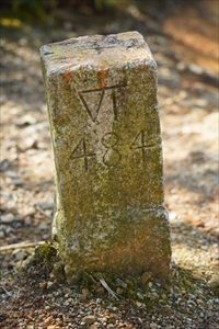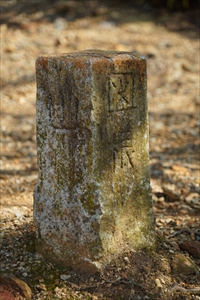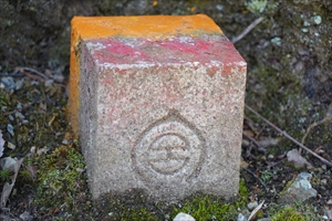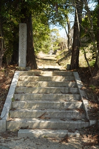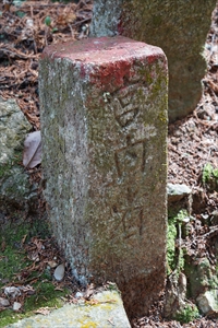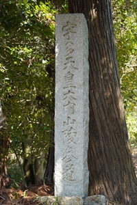 鳴滝宇多野谷(なるたき-うだのたに)の大内山山頂近く東に、大内山陵(おおうちやま-の-みささぎ)がある。 平安時代前期-中期の第59代・宇多天皇(うだ-てんのう) が葬られている。陵は山中の急な参拝道を登りきった地点にあり、南に京都市内を一望できる。 ◆歴史年表 平安時代、931年、7月、宇多法皇は仁和寺御室で亡くなる。(『日本紀略』)。遺骸は境内北の大内山の魂殿(たまどの)に遷された。9月、同地で火葬にされる。(『帝王編年記』)。拾骨はされず、土を覆い大内山陵に改葬されたともいう。(『日本紀略』) 中世(鎌倉時代-室町時代)、陵の所在地は不明になった。 近世(安土・桃山時代-江戸時代)、陵所の地について諸説が出された。 江戸時代、1862年、文久の修陵で、現在地が陵として修補された。 ◆宇多天皇 平安時代前期-中期の第59代・宇多天皇(うだ-てんのう、867-931) 。男性。定省(さだみ)、亭子院帝(ていじいんの-みかど)、寛平(かんぴょう)法皇。京都の生まれ。父・第58代・光孝天皇、母・尊称皇太后・班子(はんし)女王(式部卿・仲野親王の娘、第50代・桓武天皇の孫)の第7皇子。884年、源姓により臣籍に下り、官人になる。887年、病の父・光孝天皇の希望、太政大臣・藤原基経の推挙により親王に復した。その初例になる。皇太子、践祚(せんそ、皇嗣が天皇の地位を受け継ぐ)、即位した。その後、基経との間に権力争いが起こる。勅書中、橘広相が起草した「阿衡の任」の解釈をめぐり、基経は「実権のない礼遇」として天皇に抗し政務を怠業する。半年後、天皇が譲歩し勅書を改めた。(「阿衡(あこう)事件」)。891年、基経の没後、関白を置かず、基経に諫言した菅原道真、基経の子・藤原時平を起用する。897 年、13歳の皇太子・敦仁(あつひと/あつぎみ)親王(第60代・醍醐天皇)に譲位し、帝王学の訓戒「寛平御遺誡(ごゆいかい)」を与え、道真の重用を求めた。太上天皇と称せられる。899 年、仁和寺で出家(空理、後に金剛覚)、仁和寺1世になる。太政法皇になり、出家した上皇を「法皇(太上法皇)」と称した初例になる。仁和寺内の御所が「御室」と尊称された。東大寺で菩薩戒、901年、東寺で伝法灌頂を受ける。道真は時平の讒言(ざんげん)により太宰府へ左遷になる。宇多法皇は内裏宮門に座り込み抗議した。913年、詩宴「亭子院歌合」を開く。沈滞していた詠歌への意欲を刺激した。918年、仁和寺1世になる。大覚寺で寛空に灌頂を授けた。 基経の死後は藤原氏を抑え、菅原道真を起用した。摂関政治の弊害を改める親政を行う。律令の原則に立ち返る。(「寛平(かんぴょう)の治」)。仁和寺内に御所を営み、亭子院、六条院にも住む。和歌、音楽を好み、琵琶の名手として知られた。歌集『亭子院御集』、『古今集』などにも収められた。天皇日記の初例『宇多天皇日記』を著す。寺家宝蔵目録『仁和寺御物実録』がある。京都で没した。65歳。 仁和寺御室で没し、境内北の大内山陵(北区)に葬られた。 ◆陵墓 陵は方丘であり、陵地は、参拝道より一段低い地にある。南面している。空堀がある。 平安時代中期、931年旧7月、宇多法皇は仁和寺で亡くなる。(『日本紀略』)。遺骸は境内裏の大内山の魂殿に遷された。旧9月、同地で火葬にされた。(『帝王編年記』)。拾骨はされず、土を覆い大内山陵に改葬されたともいう。(『日本紀略』)。中世(鎌倉時代-室町時代)、陵の所在地は不明になった。その後、陵の所在地は不明になる。近世(安土・桃山時代-江戸時代)、陵所について諸説が出された。江戸時代後期、1862年の文久の修陵で、現在地が陵として修補される。この時も、丘陵の形は見られず、平坦な山地の四周に堀跡があったという。 ◆宮石標 ◈角柱標石の「宮石標(みや-せきひょう)」は、参道途中に立てられている。境界杭であり側面に、独特の丸みを帯びた意匠の「宮」の刻印がある。旧御料局の印しで、皇室所有地の御料林を意味した。角柱の上面は隅切りされ「×」の刻印が入る。一辺12㎝。 近代、1885年に宮内省内に御料局が設置され、皇室所有地の御料林を管理経営した。1889年に佐渡・生野鉱山が皇室へ移譲される。1889年-1890年には府県・北海道の山林原野(350万町歩)が皇室財産に編入されている。このうち、御料財産の一部(101万歩)は皇室典範第45条により、世伝御料として皇室の世襲財産になった。1908年に御料局は帝室林野管理局に改称され、この時、境界杭の石標も当初の「御料局三角点(點)」から「宮三角点(點)」に変更されている。 御料局の三角点標石は、近代、1894年に定められた御料地測量規程(御料局長達第一217号)により寸法・形状が決められていた。角柱(一辺12-15㎝、高さ75㎝)の上面は隅切りされ「×」の刻印が入る。石標の5分の4を地下に埋めた。また、主要な三角点には盤石状の地中標(一辺36㎝、厚さ15㎝)を設けた。その後、宮三角点に変更されている。なお、それ以前にも「宮」の字が刻印された境界標石はあったという。 1924年に帝室林野管理局は帝室林野局に改称され、1947年