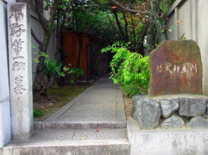 北大路通南、堀川通西に、平安時代の紫式部(むらさき-しきぶ)と小野篁(おの-の-たかむら)の墓と伝わるものがある。 ◆歴史年表 奈良時代、853年、小野篁が亡くなった。この地に葬られたとの伝承がある。 平安時代、紫式部(973?-1031?)は、口碑としてこの地に葬られたという。付近はかつて、雲林寺の境内に含まれていたとみられている。 南北朝時代、1362年頃、公家・学者・歌人・四辻善成(よつつじ-よしなり、1326-1402)は、紫式部墓所について記している。「白亳(びゃくごう)院南に在り」とある。(『源氏物語』注釈書の『河海抄(かかいしょう)』) 江戸時代、1795年、有志により現在の墓前に、「紫女顕彰碑」が立てられようとした。その後、大徳寺・碧玉庵(へきぎょくあん)に立てられる。 1823年、肥前国の勘定役・小島祐介は、現在の墓所を訪ねている。(『甲子夜話続編』巻15) 近代、1869年、現在の墓前に、小野篁の末裔という旧金沢藩家老・横山政和により、「参議小野公塋域(えいいき)碑」が立てられた。 1937年、墓域は拡張されている。 現代、1989年、現在の顕彰碑が紫式部顕彰会により建立された。 ◆紫 式部 平安時代前期-後期の歌人・作家・紫 式部(むらさき-しきぶ、973頃-1014頃)。女性。本名は香子(たかこ/かおりこ/よしこ)。父・藤原為時、母・藤原為信の娘。幼くして母、後に姉も亡くす。漢籍に通じた。996年、父・為時が越前守に任じられ紫式部も下向する。997年、藤原宣孝(のぶたか)と和歌の贈答をし、求婚の書状が届く。宣孝は式部の又従兄弟に当たる。997年‐998年、紫式部は単身帰京する。998年頃、複数の妻子ある地方官吏・藤原宣孝の妻になる。999年、式部は一人娘・賢子(かたこ/けんし)を産む。1001年、夫・宣孝と死別した。『源氏物語』起筆ともいう。1006年/1005年/1004年、内覧左大臣・藤原道長の娘・中野彰子(しょうし、のちの院号・上東門院)に仕える女官になったともいう。紫式部は侍講と して漢文学を教え、傍ら54帖の『源氏物語』を執筆した。物語は当初から宮廷で評判になる。1008年、彰子に『楽府』を進講する。藤原道長と女郎花の歌を贈答する。『源氏物語』が流布した。『源氏物語』冊子作りが進む。道長は『源氏物語』草稿文を持ち帰る。1009年、道長と歌を贈答した。1010年?、『宇治十帖』執筆を始める。『紫式部日記』消息文を執筆する。1013年、『紫式部集』を編集した。1014年、皇太后彰子の病気平癒祈願のために清水寺に参詣する。 通称名は藤(ふじ)式部と呼ばれた。候名(さぶろうな)の「式部」は、父の官名「式部丞(しきぶじょう)」に由る。『源氏物語』中の女主人公、紫の上に因み、紫式部と呼ばれるようになる。娘の賢子(大貳三位、だいにさんみ)も、第70代・後冷泉天皇の乳母になり、歌人としても知られた。 『源氏物語』は「桐壷」から始まる54帖からなり、光源氏の誕生と栄華、その晩年の苦悩、その死と子らの悲哀を描く三部構成になる。21帖「少女」巻では、漢学に通じた「漢才(からざえ)」に対し、かな(女手)を用いることを「大和魂」と記した。物語は彰子のために書かれたともいう。当初から宮廷で評判になる。紫式部は、自らの半生を物語に投影したという。12年の歳月をかけ、完成とともに亡くなる。 紫式部墓といわれるものが北区紫野にある。引接寺(千本閻魔堂、上京区)に供養塔が立つ。蘆山寺(上京区)は邸宅跡という。 ◆小野 篁 平安時代前期の公卿・文人・小野 篁(おの-の-たかむら、802-853)。男性。野狂、野相公(やしょうこう)、野宰相(やさいしょう)。父・岑守(みねもり)。小野妹子の子孫、孫は小野道風。若い頃、弓馬に熱中し学問を顧みず、第52代・嵯峨天皇を嘆かせた。以後、学問に専心した。822年、文章生、その後、巡察弾正、弾正少忠、大内記、蔵人、式部少丞、大宰少弐などを歴任した。833年、東宮学士になる。『令義解(りょうのぎげ)』の序を書く。834年、遣唐副使に任命される。838年、3度目の出発に際し、大使・藤原常嗣が篁の船を求めて対立した。篁は病気と偽り乗船を拒否し『西海謡』を作り風刺する。嵯峨上皇により隠岐に配流された。840年、召還され、陸奥守などを経て、847年、参議になる。51歳。 従三位、左大弁。漢詩、歌に優れ、『経国集』以下に詩文、『古今和歌集』以下に和歌が残る。百人一首に「わたの原八十島かけて漕ぎ出でぬと人には告げよあまのつりね」がある。 伝承として、篁は昼は朝廷に仕え、毎夜、冥土へ入り、閻魔庁第二冥官として大王のもとで死者に対する裁判に立会っていたという。藤原高藤、藤原良相らを蘇生させたともいう。これらの篁の冥官説は平安時代より、また室町時代に始まったともいう。江戸時代には六道珍皇寺より篁が冥土に行き来したとする話が定着した。(『江談抄』『今昔物語』『元亨釈書』)。後人作に『篁物語』がある。 紫式部の墓(北区)の隣に墓がある。建立の経緯については不明とされる。少なくとも室町時代には存在していたという。 ◆四辻 善成 鎌倉時代後期-室町時代