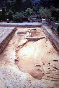 ![]() ![]() 大堰離宮と見られる園池跡の発掘状況、説明板より ![]() |